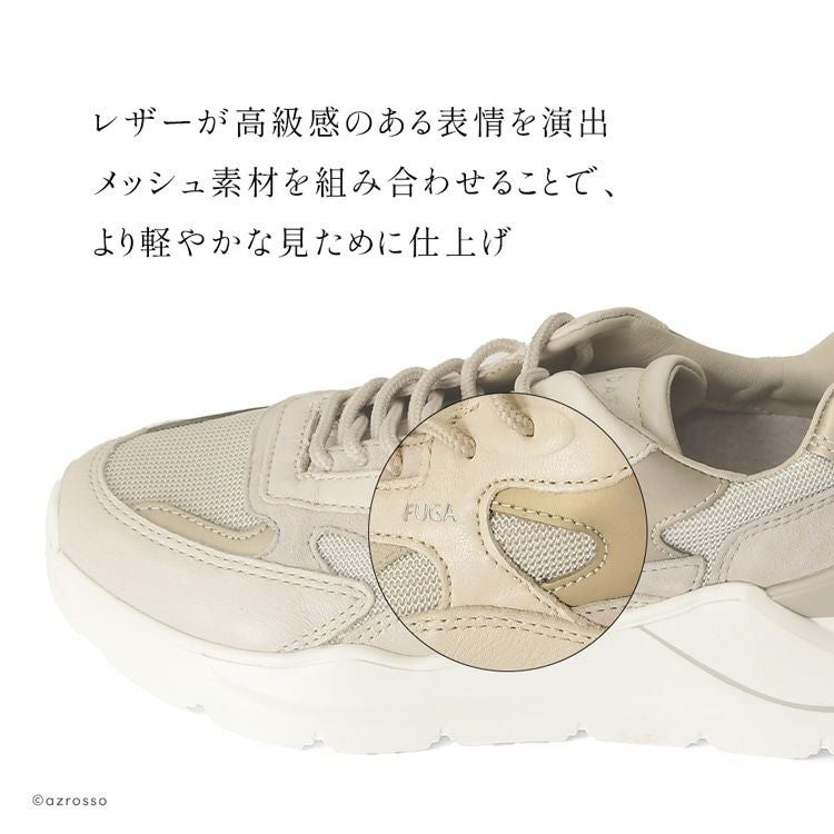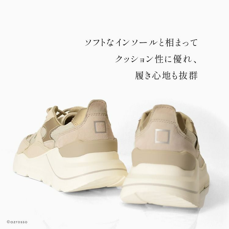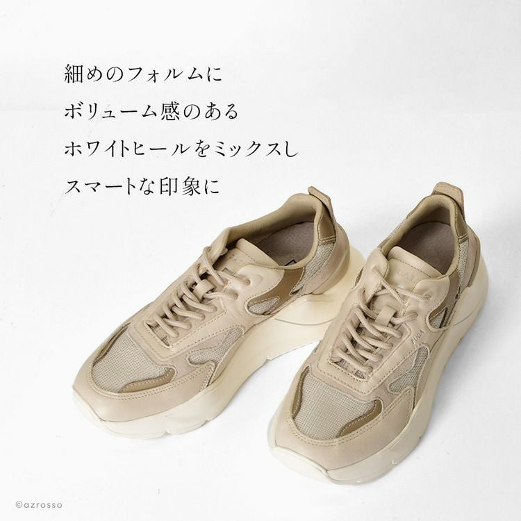 人気のダッドスニーカーを柔らかなワントーンでまとめたラグジュアリーなデイトのスニーカー「D.A.T.E. FUGA MONO IVORY」 厚底スニーカー ヒール5cm レザースニーカー ベージュ オフホワイト イタリア ブランド デイト D.A.T.E. FUGA mono