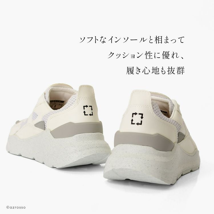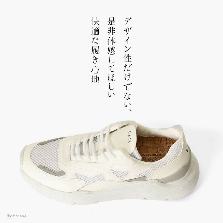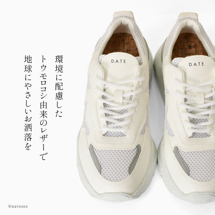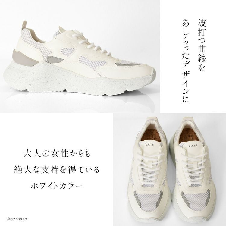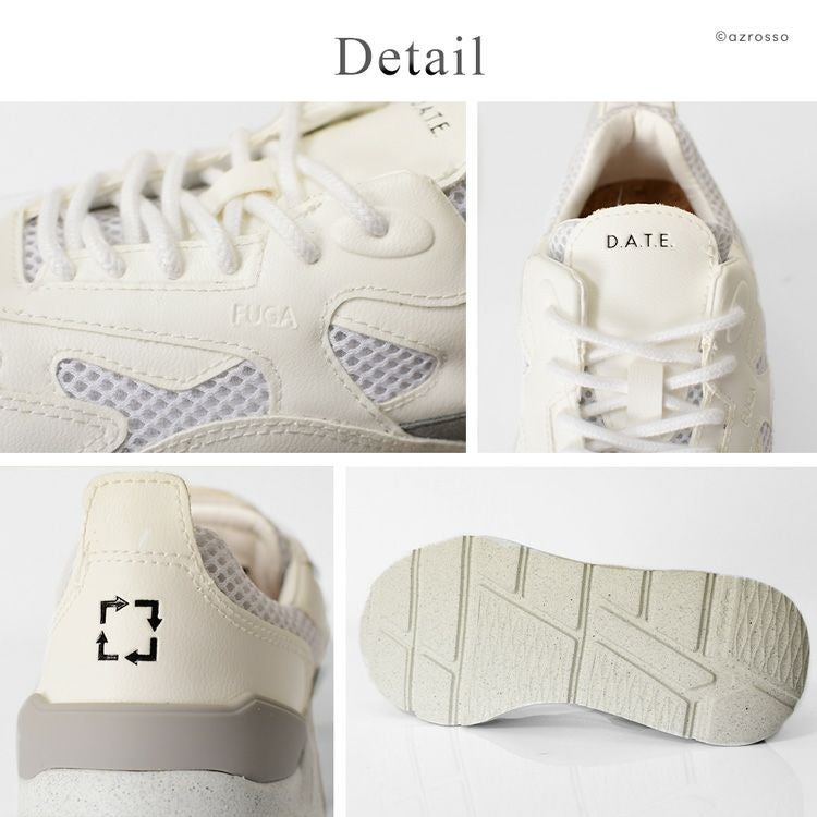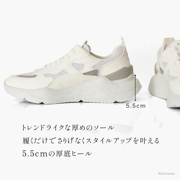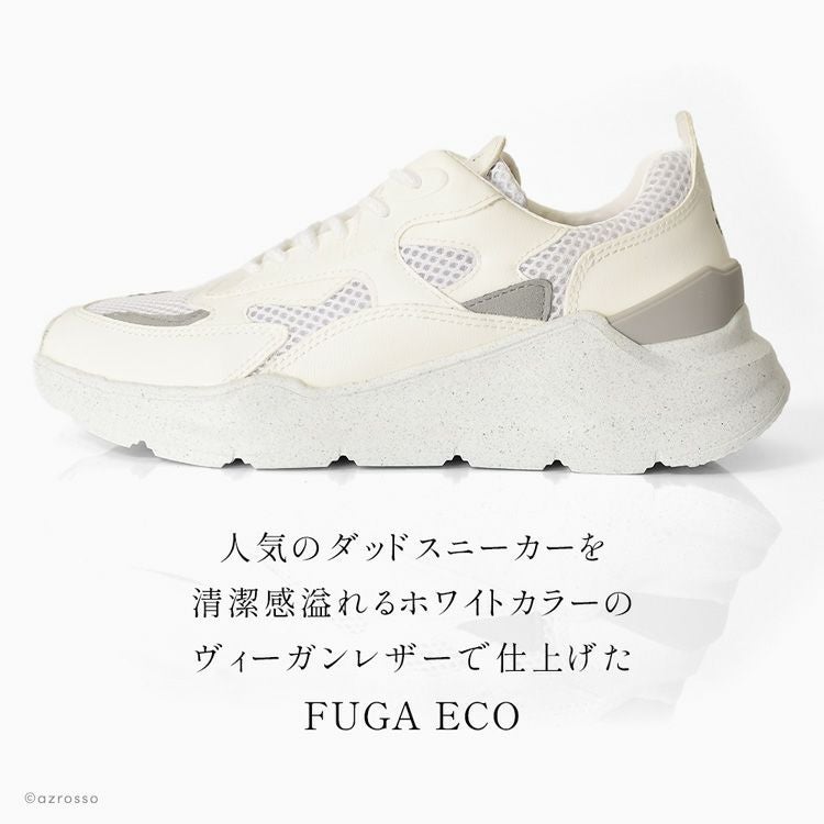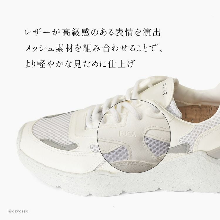 人気のダッドスニーカーを高級感漂うホワイトレザーで仕上げたラグジュアリーなデイトのスニーカー「D.A.T.E FUGA ECO WHITE」。サスティナブルなヴィーガンレザーを使用したレディーススニーカー 厚底スニーカー ビーガンレザー ホワイト メッシュ ヒール5cm イタリア ブランド デイト D.A.T.E FUGA ECO
