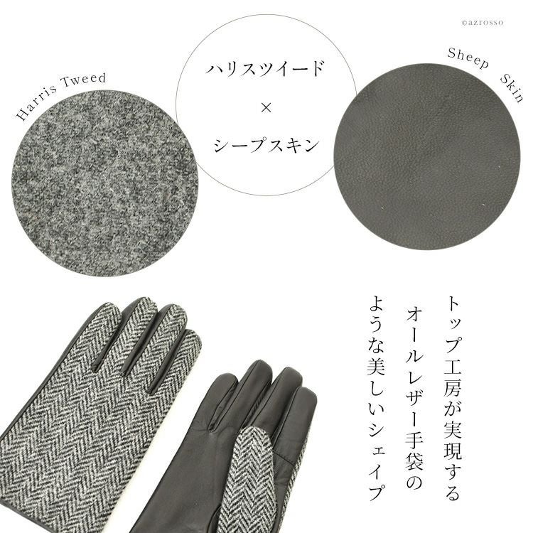 イタリアで大賞受賞の日本ブランド「クロダ」が手がけるハリスツイード×羊革の美しい手袋。指を細く長く魅せカジュアルにもフォーマルにも使い回し抜群 スマホ対応 ハリスツイード×ラムレザー 手袋 チェック柄 メンズ レザーグローブ 日本製 手袋 イタリアで大賞受賞の日本ブランド「クロダ」抗菌グローブ【通常ネコポス配送】