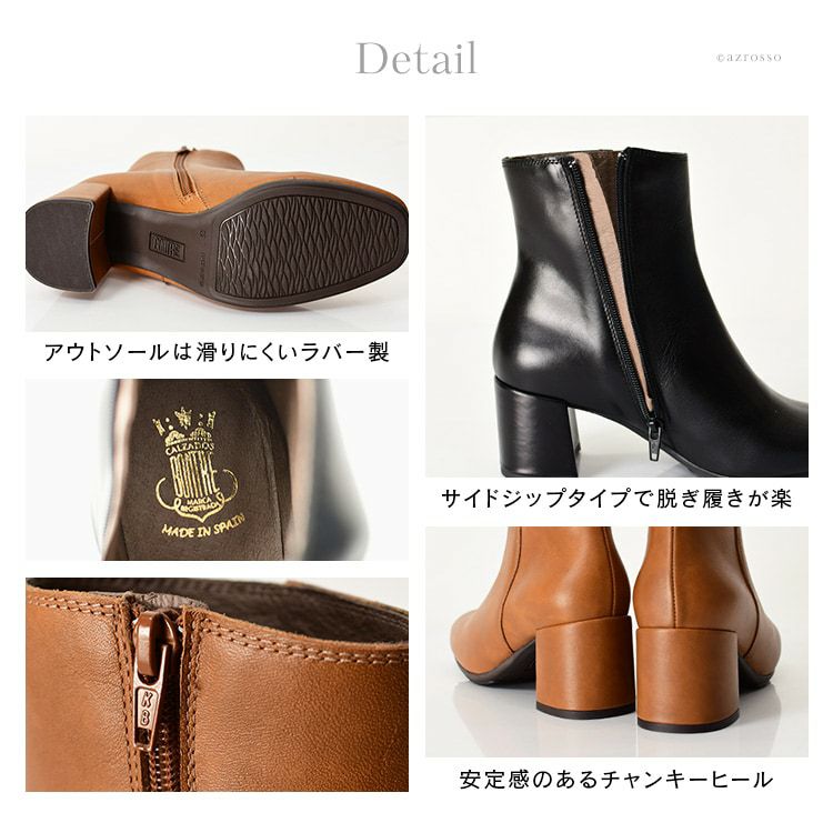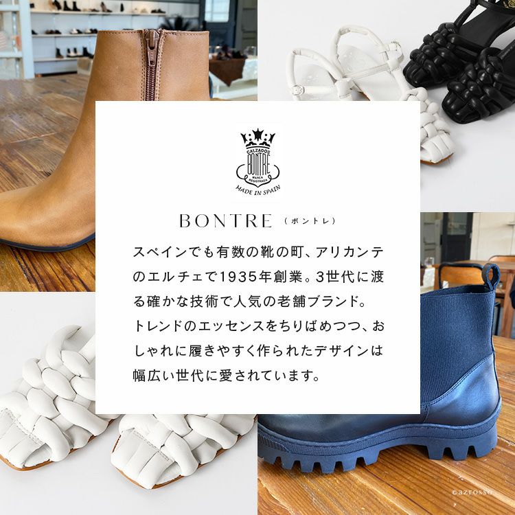 疲れ知らずのコンフォートなスクエアトゥショートブーツがスペイン老舗ブランド BONTRE(ボントレ)から入荷。美脚と安定感を実現する6cm太ヒール(チャンキーヒール)のレザーブーツ 長時間歩いても疲れない ショートブーツ コンフォート 歩きやすい 太ヒール 6cm スクエアトゥ サイドジップ 本革 スペイン製 ブランド ボントレ BONTRE