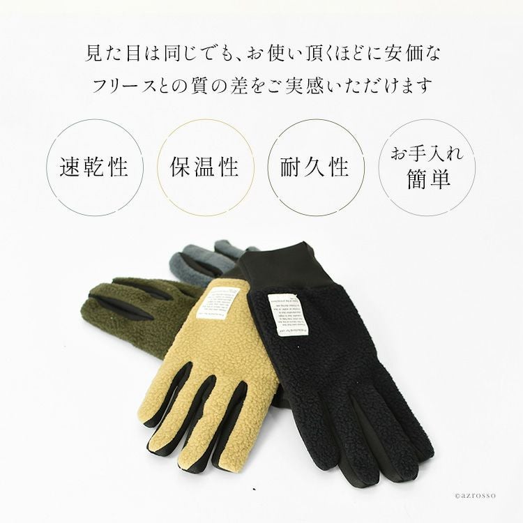 甲はモコモコ、裏地はふわふわ、手のひらは上品なスエード、の欲張りあったか手袋は冬にピッタリ、スマホ対応でシンプルなデザインだから失敗しないプレゼントに最適です。 日本製 スマホ対応 フリース スエード メンズ 手袋 ボア 裏地防寒 暖かい カーキ ベージュ ブラック グレー 黒 クロダ グレー カーキ ベージュ【通常ネコポス配送】
