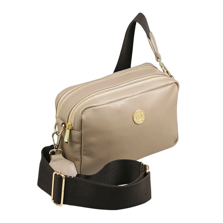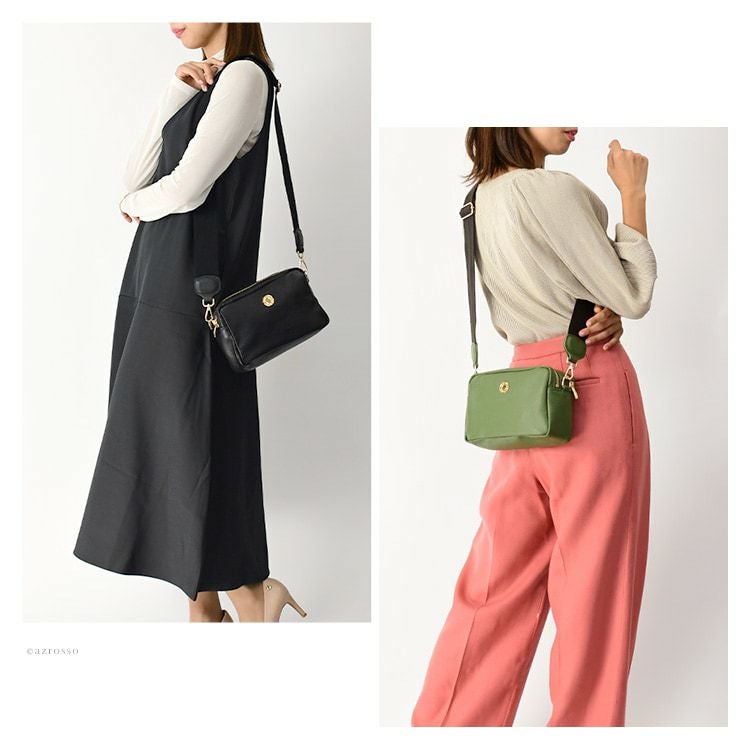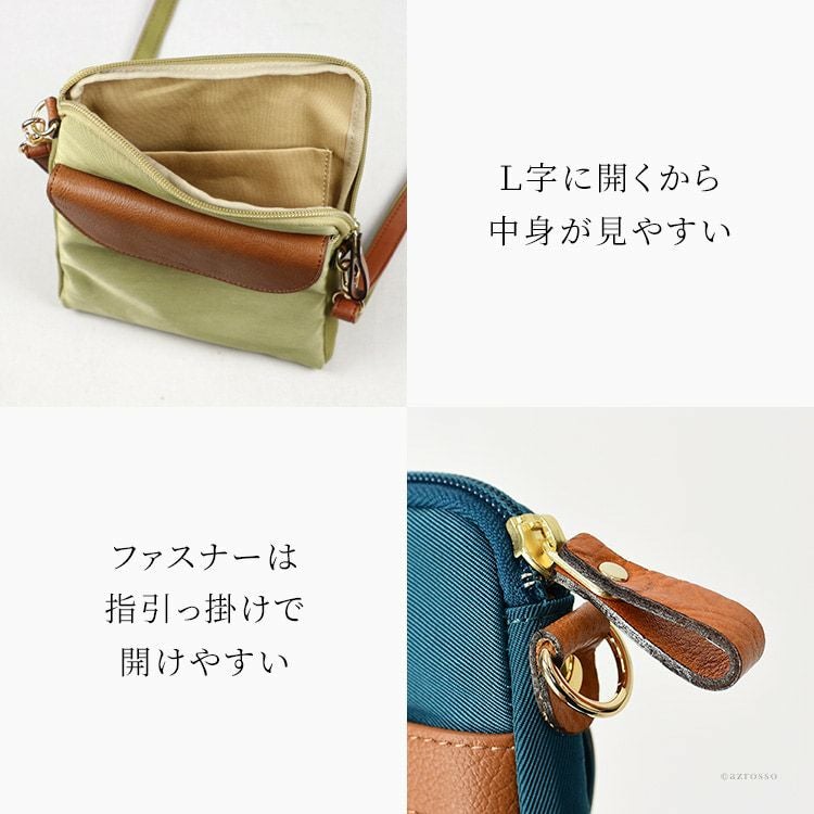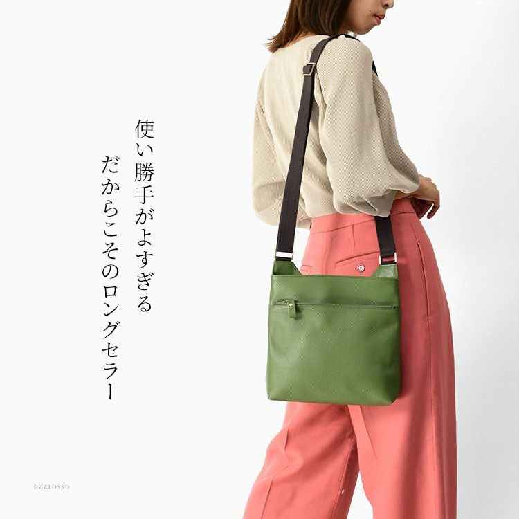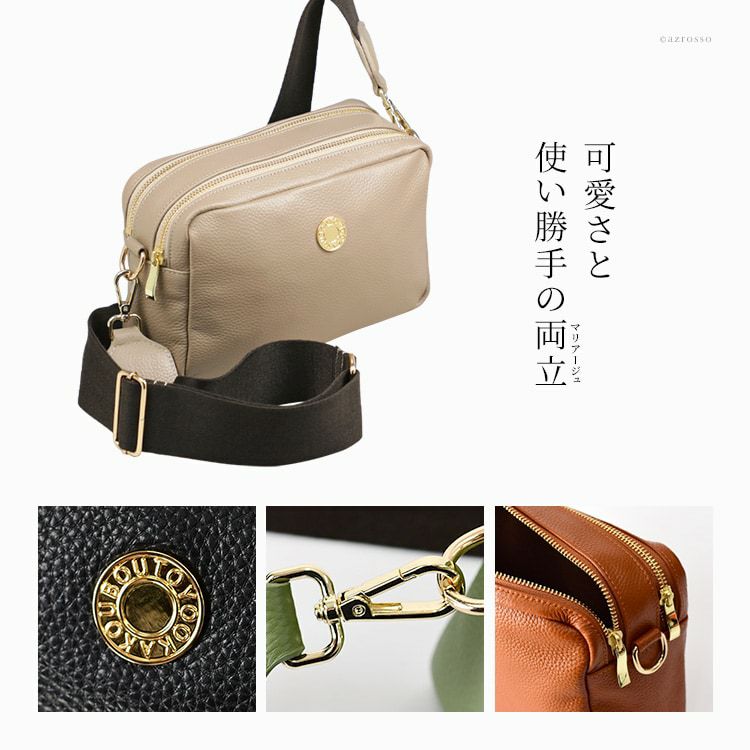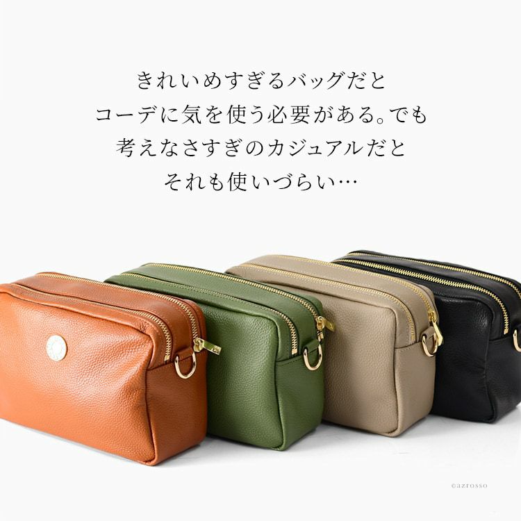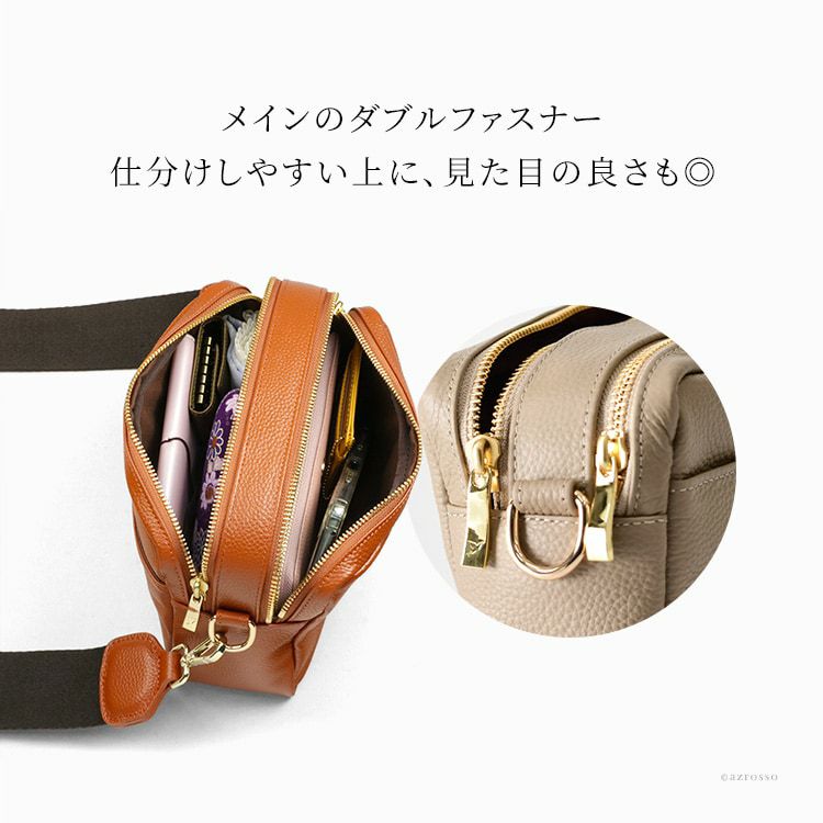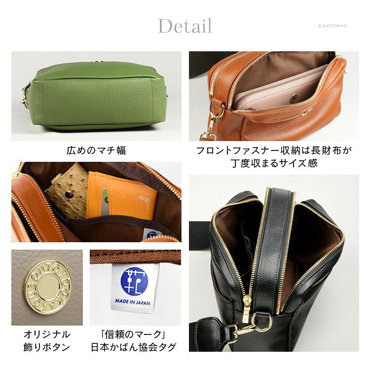 ダブルファスナーが使いやすい豊岡工房の牛革ミニバッグ。軽量で使いやすい太マチのショルダーバッグ、日本製・本革なのに驚きのプライスです 日本製 ショルダーバッグ 軽い 斜めがけ 牛革 ミニバッグ ダブルファスナー ブラック グリーン キャメル ベージュ 豊岡 鞄 ブランド 豊岡工房 レディース