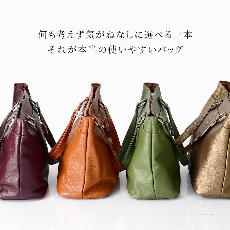 牛革でできた柔らかく使いやすい豊岡工房のトートバッグです。高品質にこだわりながらもお求めやすい値段に、通勤やデイリーユースにぴったりなデザインのレディース通勤バッグです。 日本製 本革 小さめ トートバッグ レディース 豊岡 鞄 ポケット マチ付き 自立 ハンドバッグ 通勤 シンプル 軽い 牛革 使いやすい 普段使い ブラック グリーン キャメル パープル ゴールド ベージュ