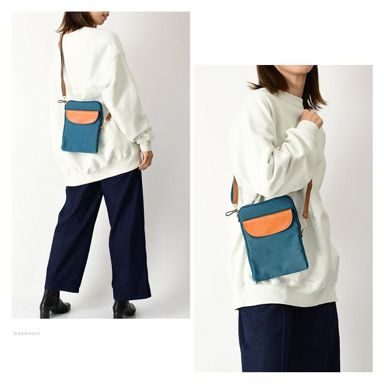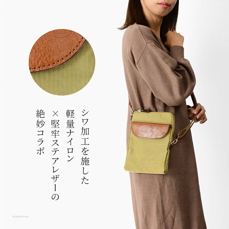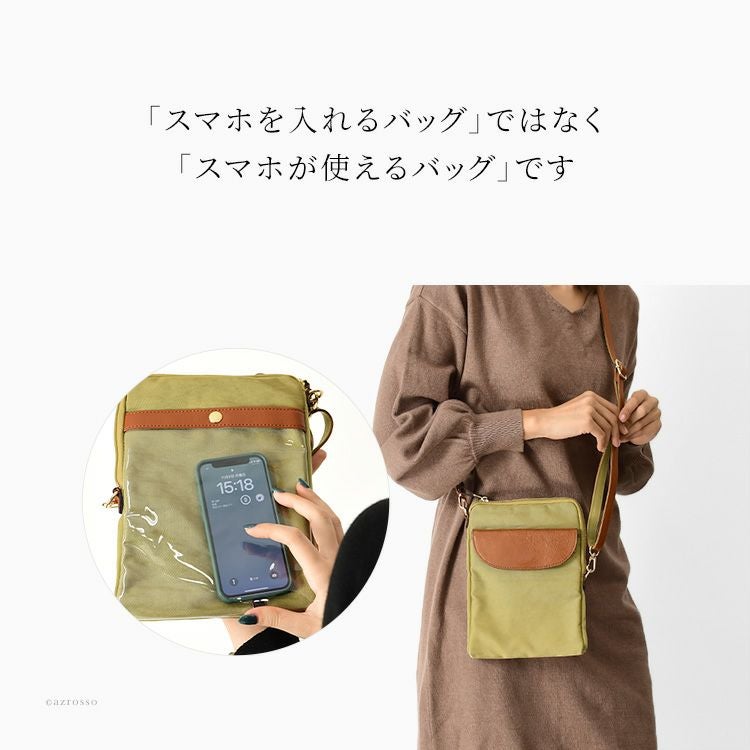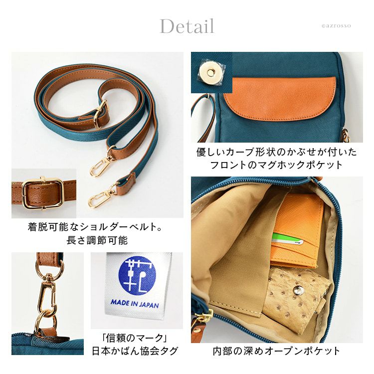 バッグに入れたままスマホが操作できる豊岡工房のナイロンミニショルダー。牛革付きのカジュアルなデザインは普段使いにもお出かけにもぴったり。日本製・高品質な驚きのプライスのレディースバッグです 日本製 ナイロン ショルダーバッグ スマホ操作 軽い 斜めがけ 牛革 ミニバッグ ブラック ブラウン ブルー 水色 豊岡 鞄 ブランド 豊岡工房 レディース 本革