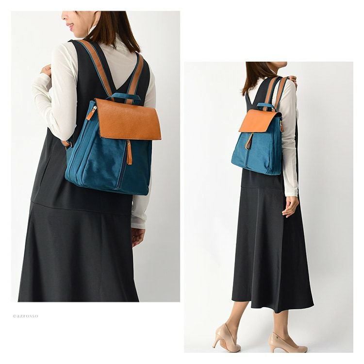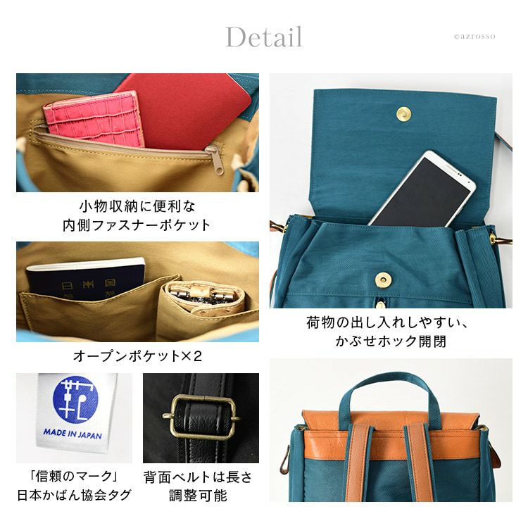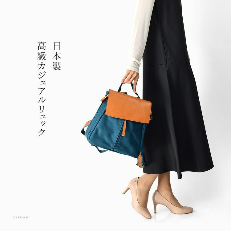 収納上手で使いやすい豊岡工房のナイロンリュック。日本製で高品質にこだわりながらもお求めやすい値段に、通勤やデイリーユースにぴったりなデザインのレディースリュックです。 日本製 本革 ナイロン リュック 軽量 スクエア レザー ブランド レディース 豊岡 鞄 豊岡工房 水色 ブラック ブルー マチ広 カジュアル