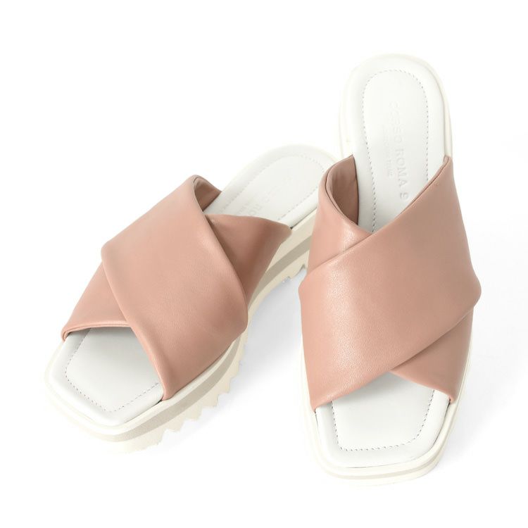 柔らかい上質ナッパレザーを使用したCORSO ROMA 9(コルソローマ ノーヴェ)のクロスベルトサンダル。脚長効果を叶えながらも安定感のある厚底プラットフォームで歩きやすい。 コルソローマ サンダル クロスベルト サンダル 厚底 レザー フラット ヒール 3.5cm 4cm 本革 おしゃれ 柔らかい レザー イタリア製 ブランド CORSO ROMA 9 コルソローマ9 ブラウン ピンク