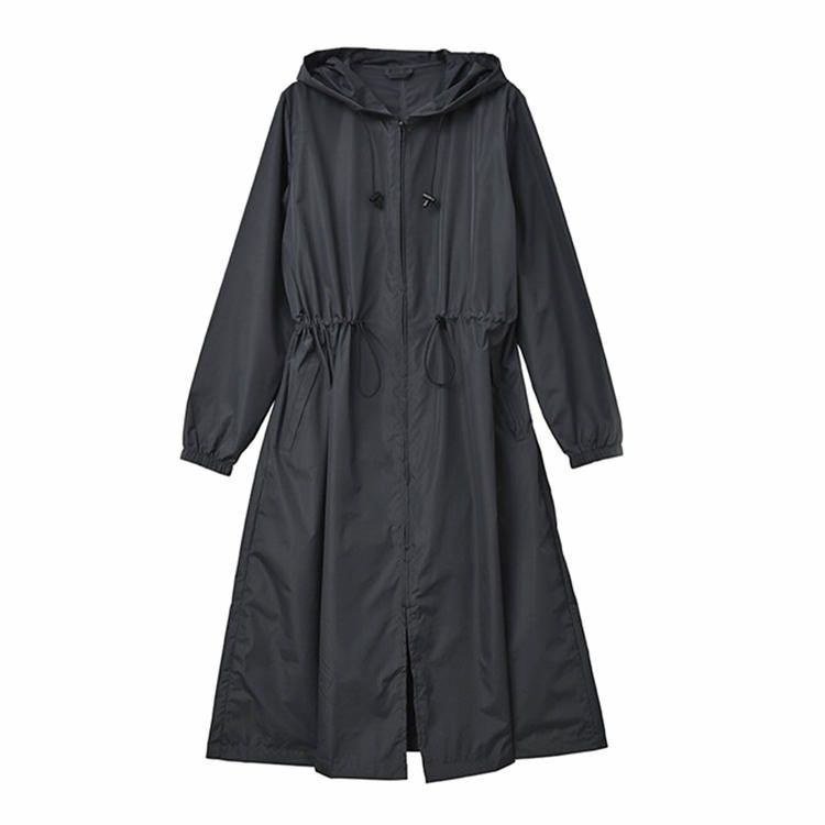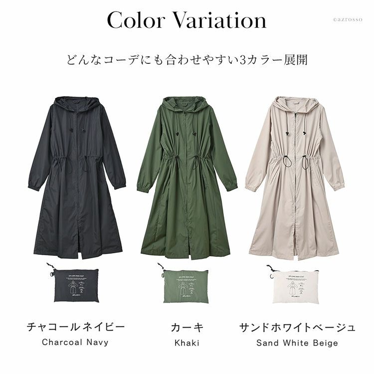 一瞬で水滴を弾くの超はっ水素材を使用したレインコートを日本ブランドnifty colors(ニフティカラーズ)より。羽織るだけでサマになるオーバーサイズ、アウターとしてデイリーユースもできる晴雨兼用 レインコート 撥水 コート 晴雨兼用 ロング丈 オーバーコート アウター 超はっ水 収納袋付き ネイビー カーキ ベージュ 紺 緑 白 日本 ブランド ニフティカラーズ