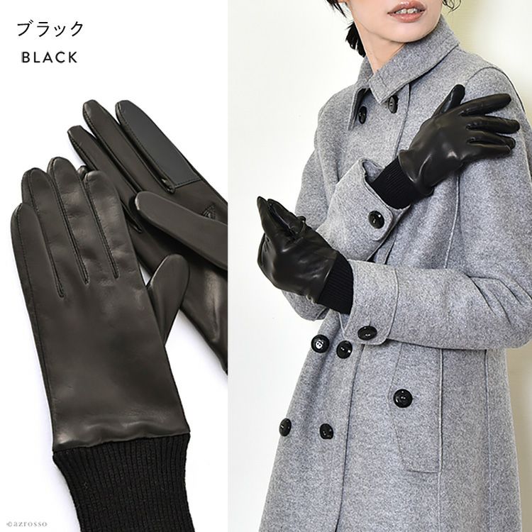 独自の縫製技術で極上の着け心地。長めのニットカフスが手首から スマホ対応 羊革 レディース レザーグローブ イタリアレザー×カシミヤ 日本製 手袋 イタリアで大賞受賞の日本ブランド「クロダ」のロングセラーグローブ