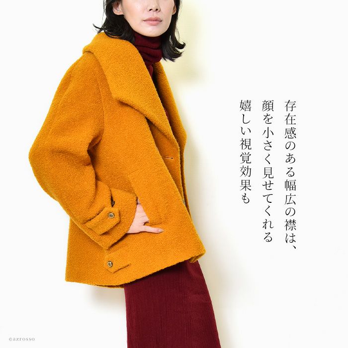 パッと目を惹く深くも鮮やかなショートコートをフランス パリの高級コート専門ブランドLENER(レネール レネル)から。希少で美しいバージンウール混レディースコートは秋冬の通勤 旅行にぴったり バージンウール ショートコート ダブルボタン コート レディース シャギーコート アウター ブランド MAISON LENER メゾン レネール ネイビー マスタード イエロー