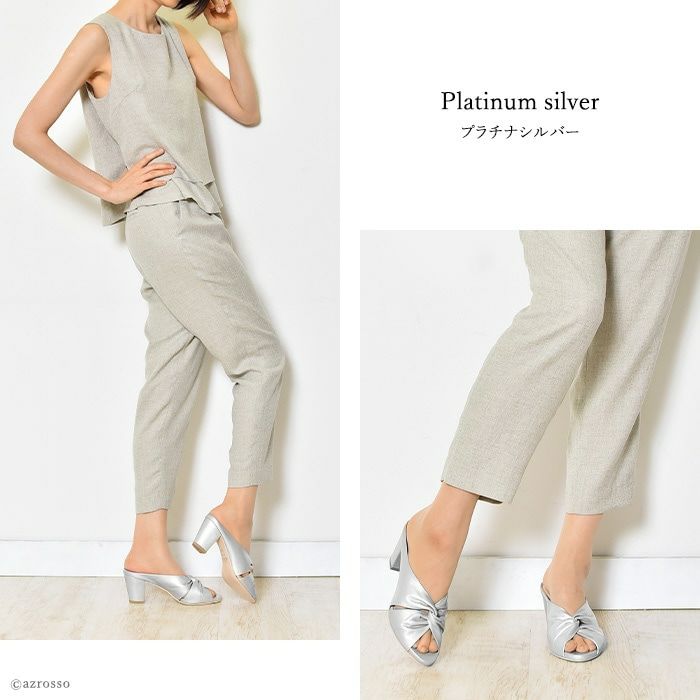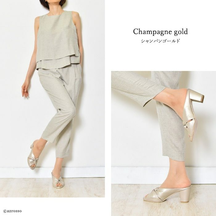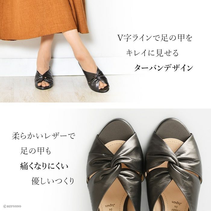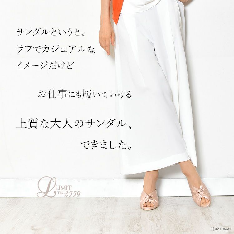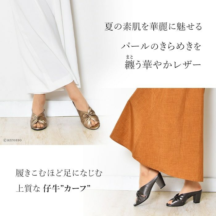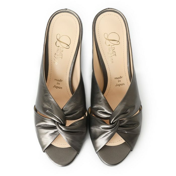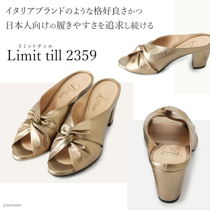 煌めくカーフレザーのビジネスに履ける上質サンダル。足を華奢で美しく見せてくれる上に安定感抜群の太ヒール 【21.5-25cm】ヒール7cm レザー チャンキーヒール ミュール サンダル|リミットティル2359