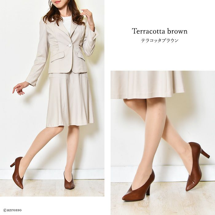 ハイヒールでもパカパカ脱げない。深めのVカットデザインが足をすっぽり包みこむレザーパンプス。キズが目立たないスタックヒール フォーマルパンプス ビジネスパンプス 21.5cm-25cm|ヒール8cm レザー Vカット スタックヒール パンプス|リミットティル2359