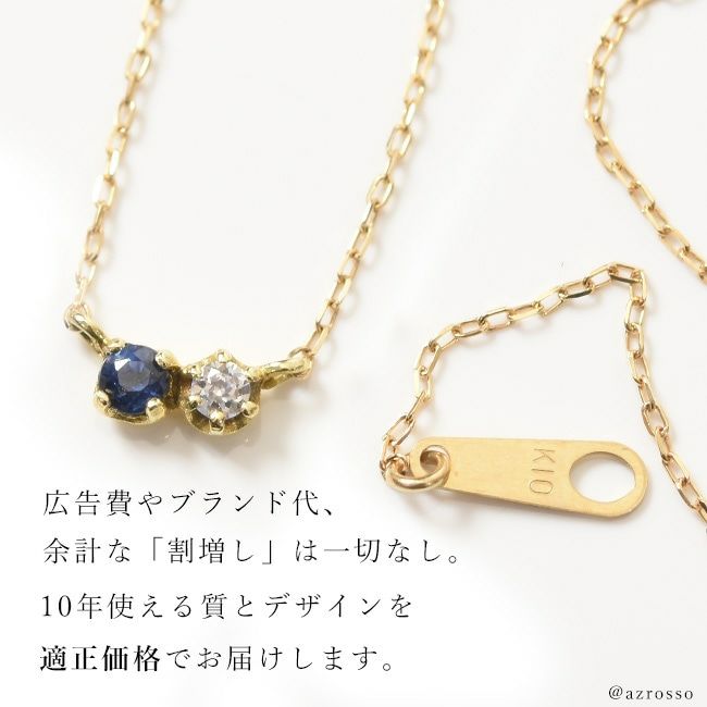 バランスよくセットされた、深い輝きのルビー/サファイアと繊細なダイヤモンドが胸元で煌めきます。歴史ある日本の宝石の街、山梨で作るハンドメイドジュエリーを、工房直出し価格で。 二粒 ネックレス ルビー サファイア ダイヤモンド k10 ゴールド コタラッテピーポー 日本製 7月 9月 誕生石 プレゼント