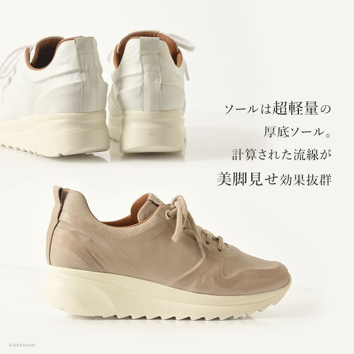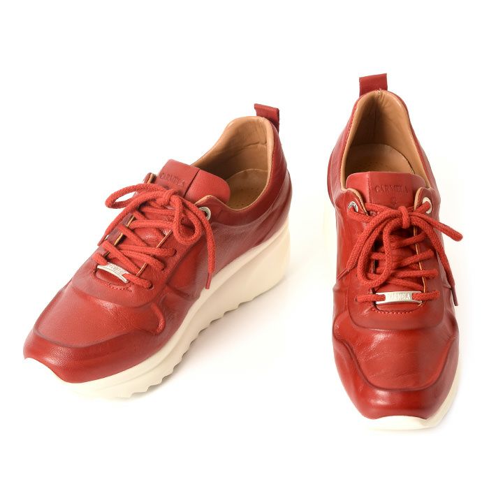 1足ずつ仕上げた後染めのアンティークな風合いが美しい 大人女性の軽量 厚底レザースニーカー スペイン最大級の靴メーカーが手掛ける、注目ブランド 本革 スニーカー レディース 厚底 軽量 レザー カジュアル シューズ スペイン ブランド ホワイト 白 グレー ピンクベージュ レッド 赤 大きいサイズ 25cm CARMELA カルメラ