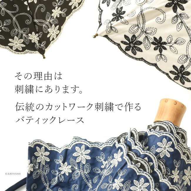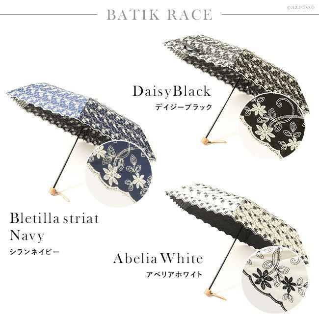 花柄×レース刺繍が美しい日傘「バティックレース」。 50cmミニサイズで携帯用に最適 裏側にブラックコーティングを施しUVカット率 99%以上 Malagavariaの刺繍折り畳み傘は母の日プレゼントにもおすすめ/ 日傘 レース 折りたたみ 刺繍 バティックレース 花柄 軽量 簡単 開閉 ブラック 黒 ホワイト 白 ネイビー 紺 マラガバリア