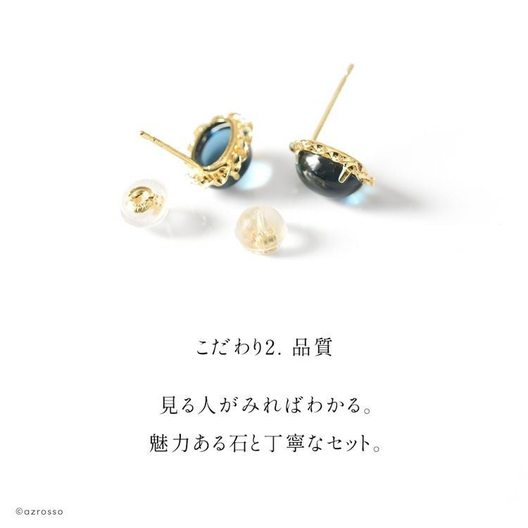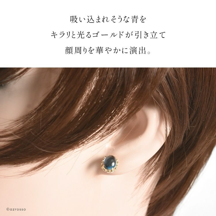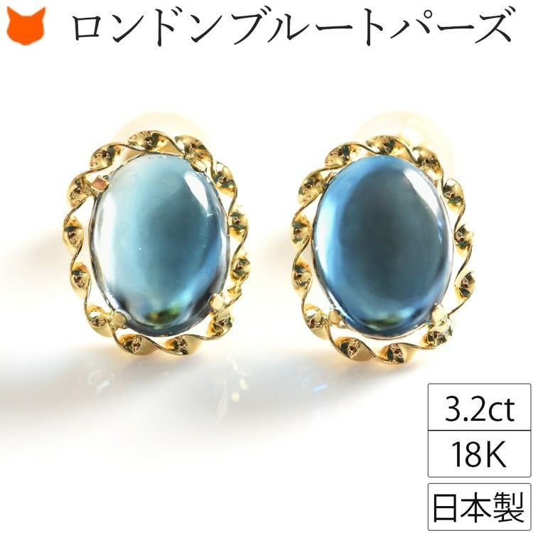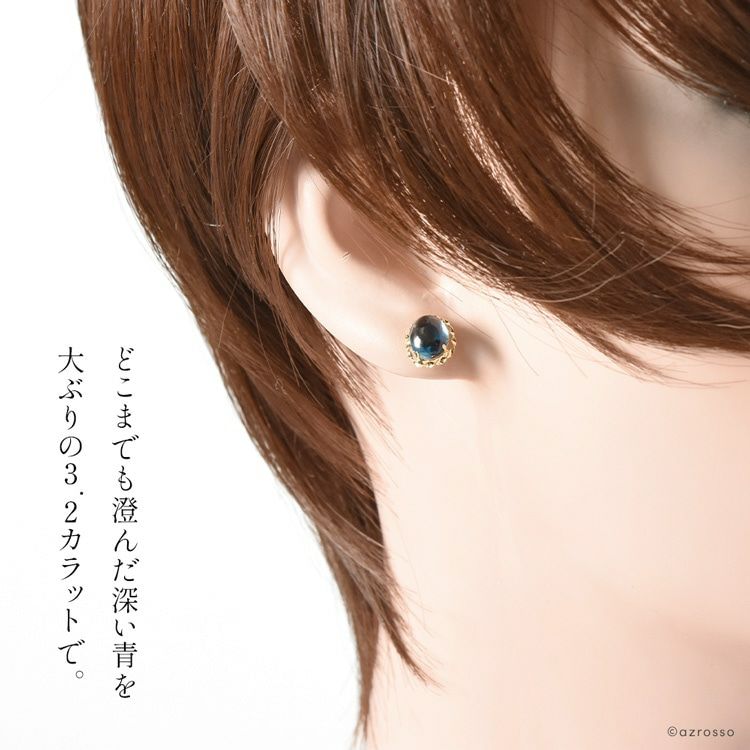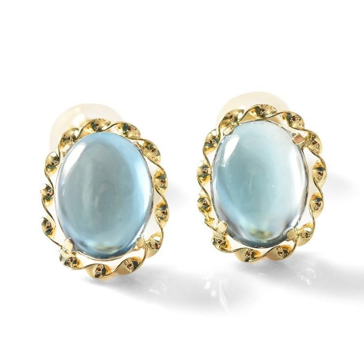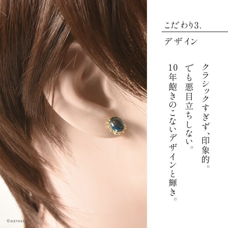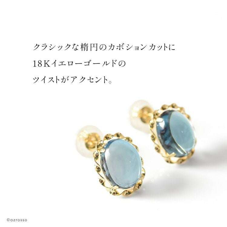 大ぶりロンドンブルートパーズのスタッドピアス。「絆を強める」石を、日本の一流職人の手から/ ロンドン ブルートパーズ オーバル 一粒 スタッド ピアス 3.2ct シンプル 楕円型 18k イエロー ゴールド K18YG コタラッテ 日本製 11月 誕生石 プレゼント