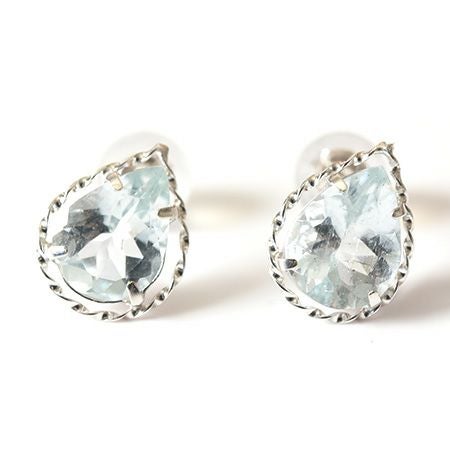 大ぶりアクアマリンのスタッドピアス。「幸福に満ちる」という石言葉とともに、日本の一流職人の手から/ 天然 アクアマリン ティアドロップ スタッド ピアス 1.6ct しずく型 18k ホワイト ゴールド K18WG コタラッテ 日本製 3月 誕生石 プレゼント
