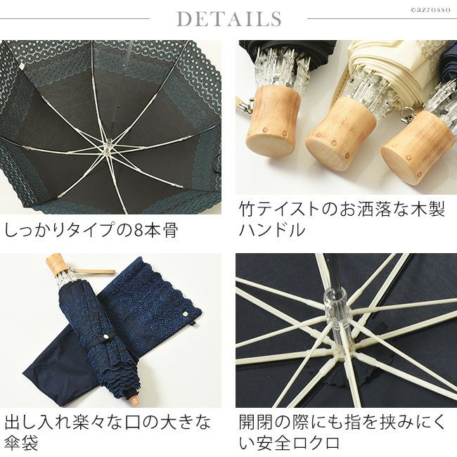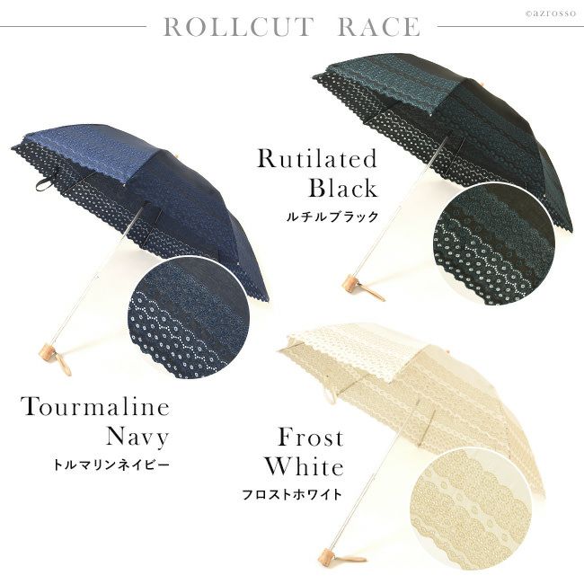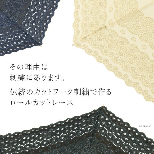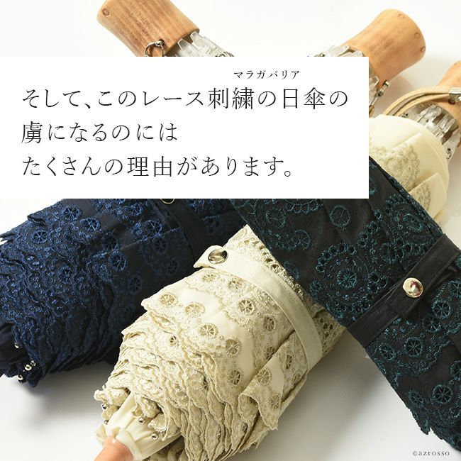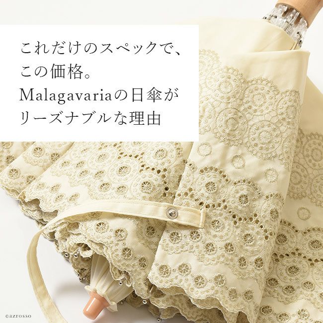 レース刺繍が美しい日傘「ロールカットレース」。 和装 着物 浴衣にも似合うレトロデザイン 開いた形がきれいな2段式 Malagavariaの折り畳み傘は母の日プレゼントにもおすすめ/ 日傘 レース 折りたたみ 刺繍 ロールカットレース ブラック 黒 ホワイト 白 ネイビー ブルー 青 マラガバリア