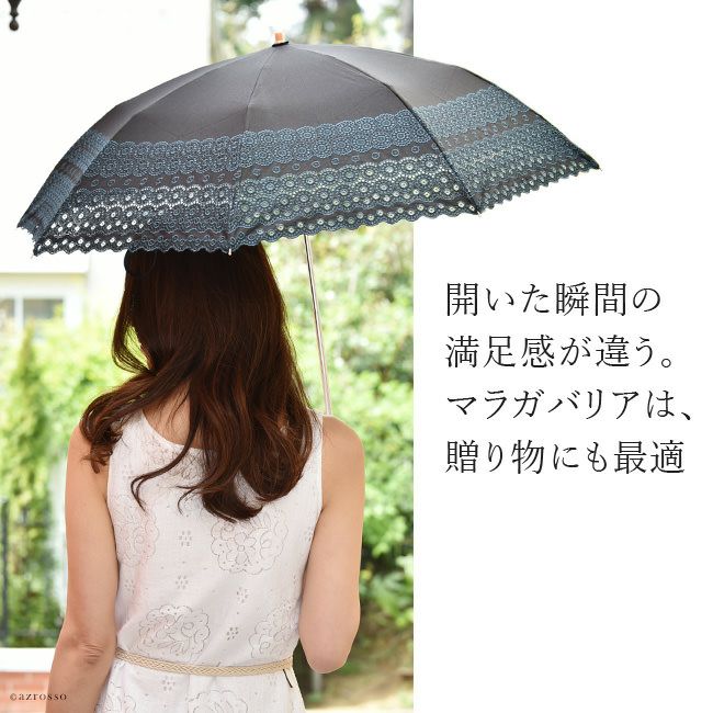 花柄×レース刺繍が美しい日傘「アラビックレース」。 和装 着物 浴衣にも似合うレトロデザイン 裏側にブラックコーティングを施しUVカット率 99%以上 Malagavariaの刺繍傘は母の日プレゼントにもおすすめ/ 日傘 レース 長傘 刺繍 アラビックレース 花柄 ブラック 黒 ホワイト 白 ネイビー ブルー 青 マラガバリア