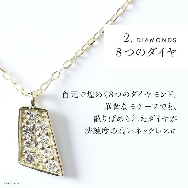 胸元を美しく彩る華奢な8つのダイヤモンド。普段使いにもダイヤを。日本の一流職人の手から/ ダイヤ ゴールド ネックレス 台形 ペンダント シンプル スクエア コタラッテピーポー 日本製 40cm 4月 誕生石 プレゼント
