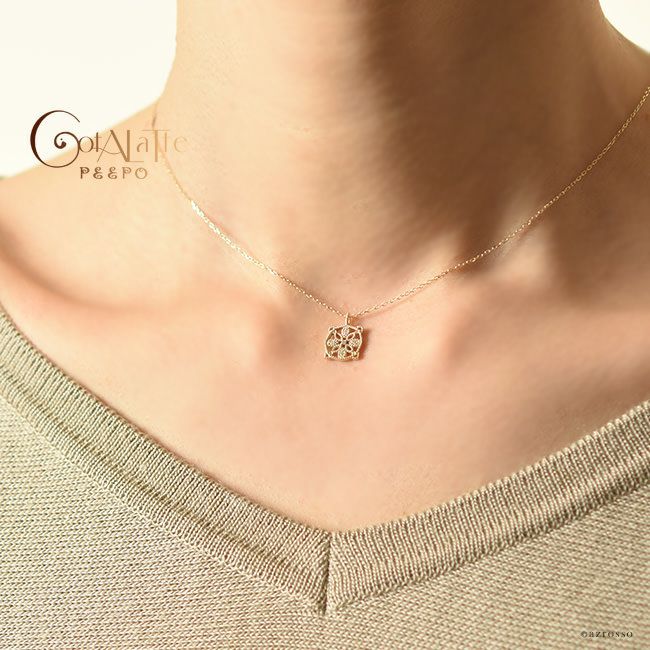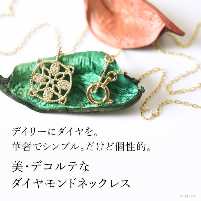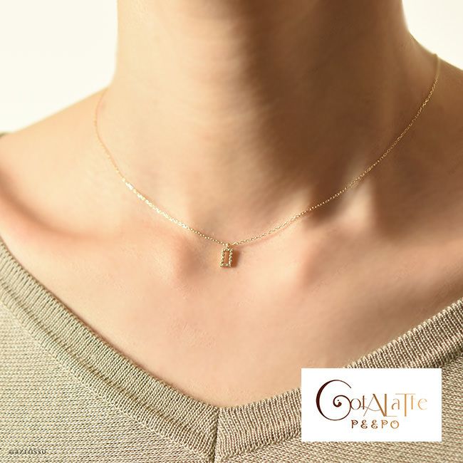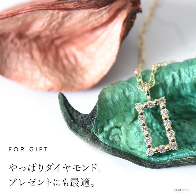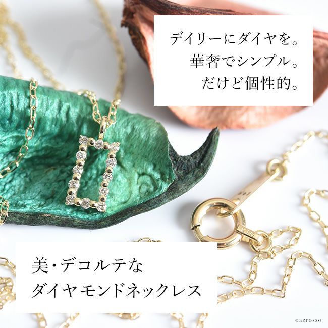 胸元を美しく彩る華奢な12個のダイヤモンド。普段使いにもダイヤを。日本の一流職人の手から/ ダイヤ ゴールド ネックレス スクエア ペンダント シンプル 長方形 コタラッテピーポー 日本製 40cm 4月 誕生石 プレゼント