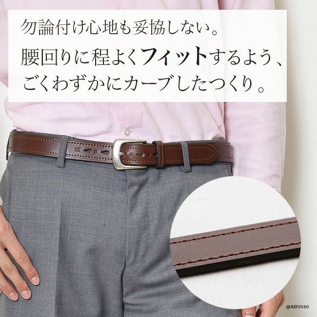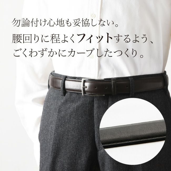 最上級ライン Morikawaシリーズのレザーベルト。予めカーブされたフランス仕立てのベルトは、ウエストにぴったりフィットして痛くない。誕生日プレゼントや父の日ギフトにもおすすめ/ Morikawa 本革 ベルト メンズ レザー 日本製 ビジネス 通勤 スーツ ブラック 黒 ブラウン 茶 大きい サイズ ギフト ノット KNOT