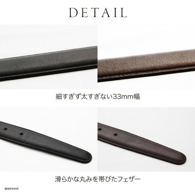 ビジネスベルト ドレスベルトのライン Attireシリーズのレザーベルト。フェザー仕立てのベルトは、ウエストにぴったりフィットして痛くない。誕生日プレゼントや父の日ギフトにも/ attire 本革 ベルト メンズ レザー 日本製 ビジネス 通勤 スーツ ブラック 黒 ブラウン 茶 シンプル ギフト ノット KNOT