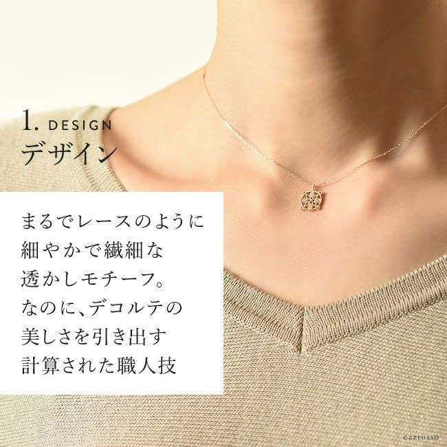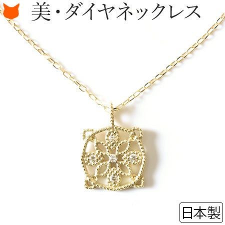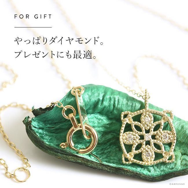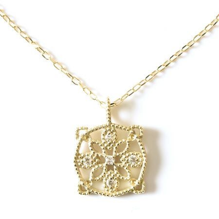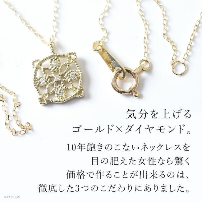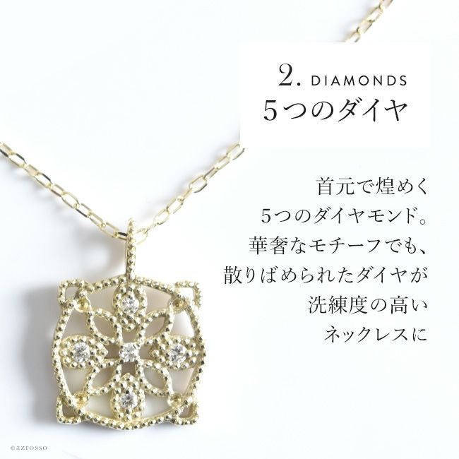 胸元を美しく彩る華奢な5つのダイヤモンドとゴールド。普段使いにもダイヤを。日本の一流職人の手から/ ダイヤ ゴールド ネックレス サークル ペンダント シンプル 透かし 模様 レース風 コタラッテピーポー 日本製 40cm 4月 誕生石 プレゼント