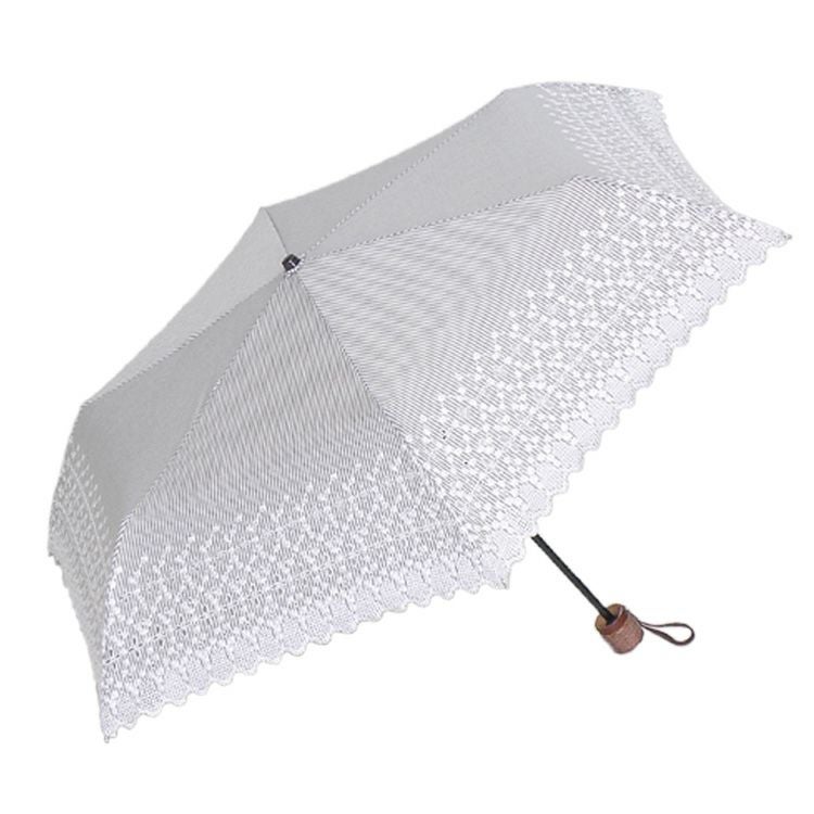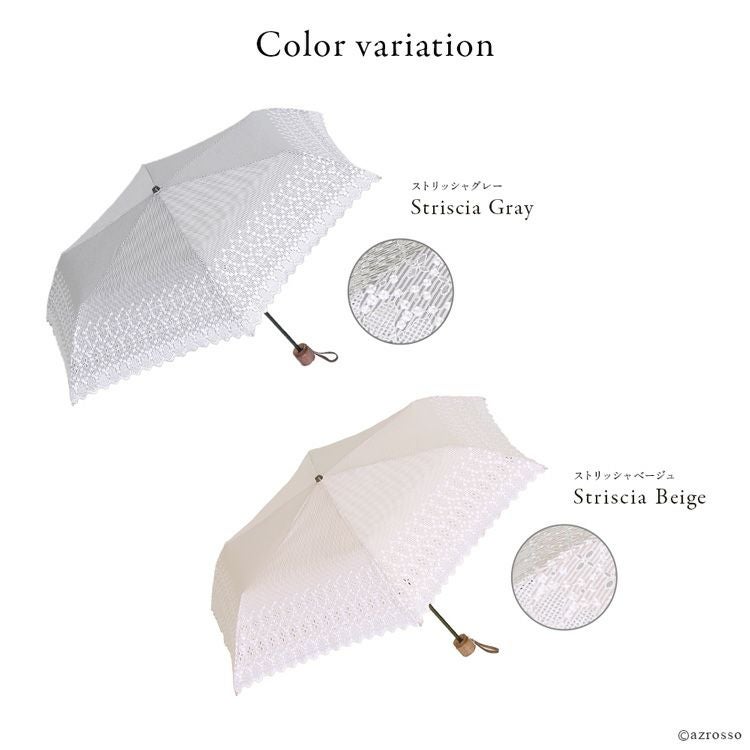 ストライプ柄の布製×レース刺繍が美しい日傘「エンブレース」。 和装 着物 浴衣にも似合うレトロデザイン Malagavariaの折り畳み傘は誕生日プレゼントにもおすすめ/ 日傘 レース 折りたたみ 刺繍 エンブレース ストライプ 柄 布製 グレー ベージュ マラガバリア