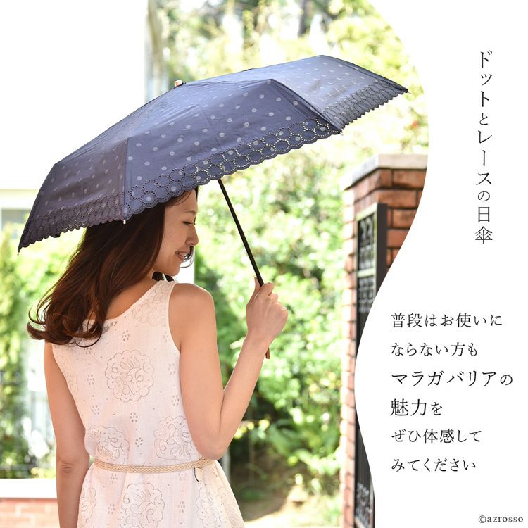 ドット柄の布製×レース刺繍が美しい日傘「オパールカットレース」。 和装 着物 浴衣にも似合うレトロデザイン Malagavariaの折り畳み傘は誕生日プレゼントにもおすすめ/ 日傘 レース 折りたたみ 刺繍 オパールカットレース ドット 柄 布製 ブラック 黒 ホワイト 白 ネイビー ブルー 青 マラガバリア