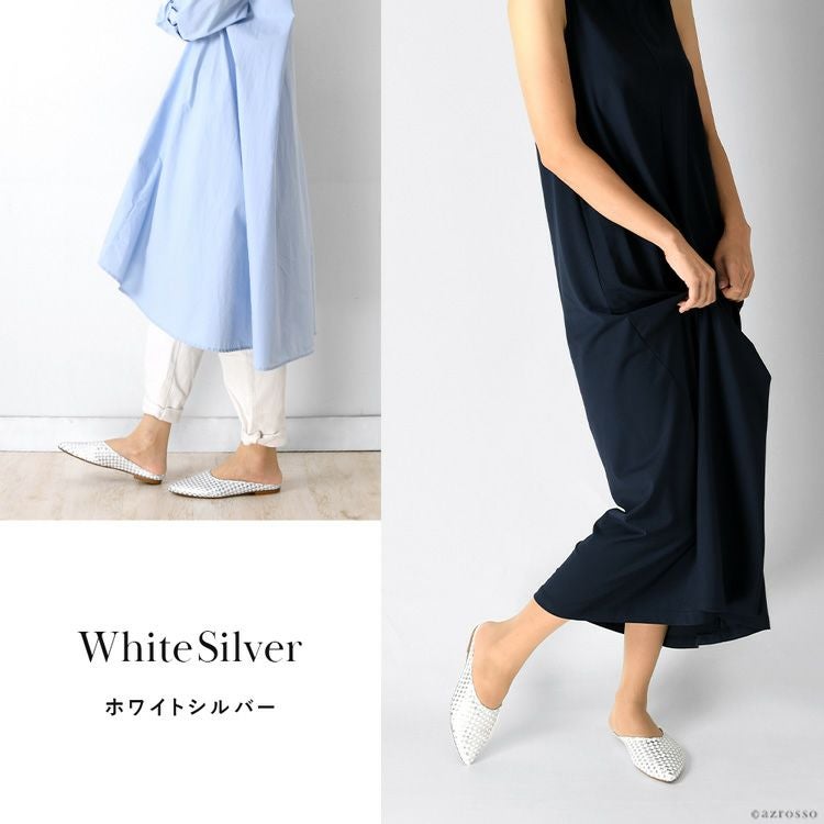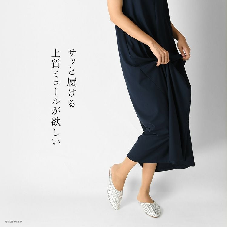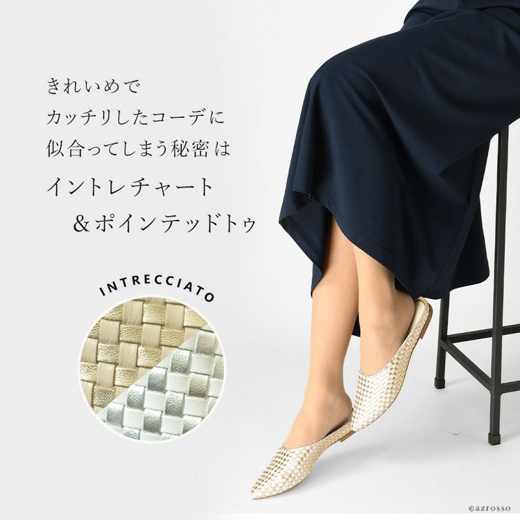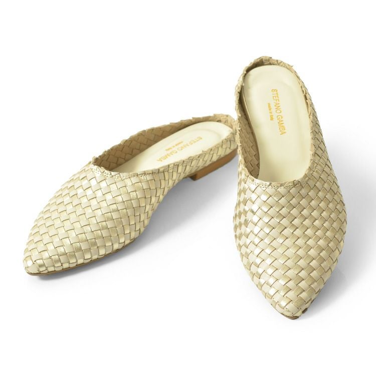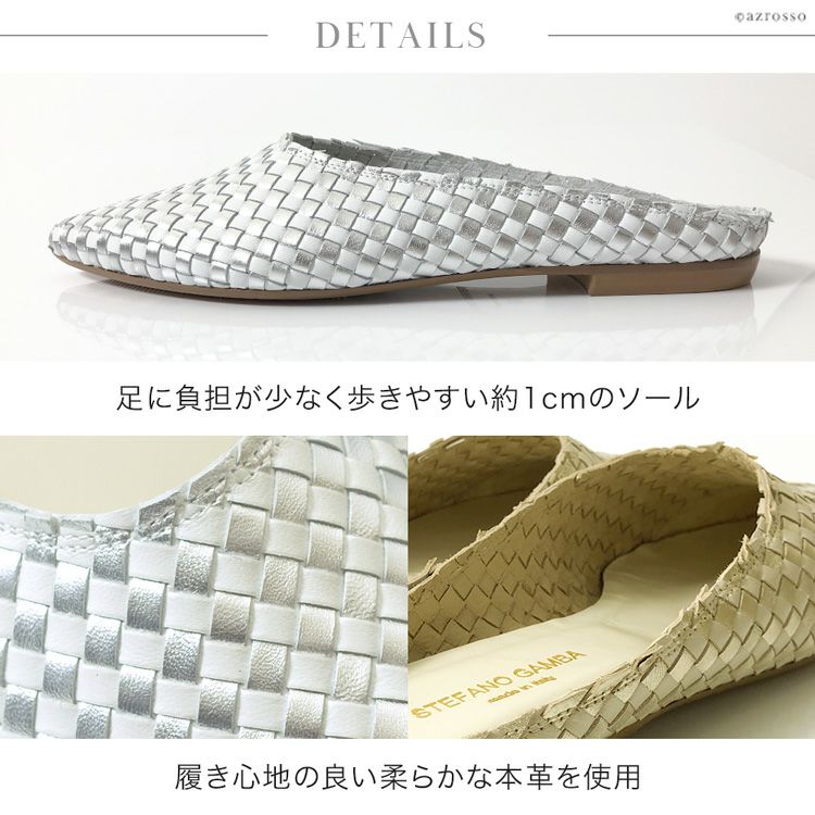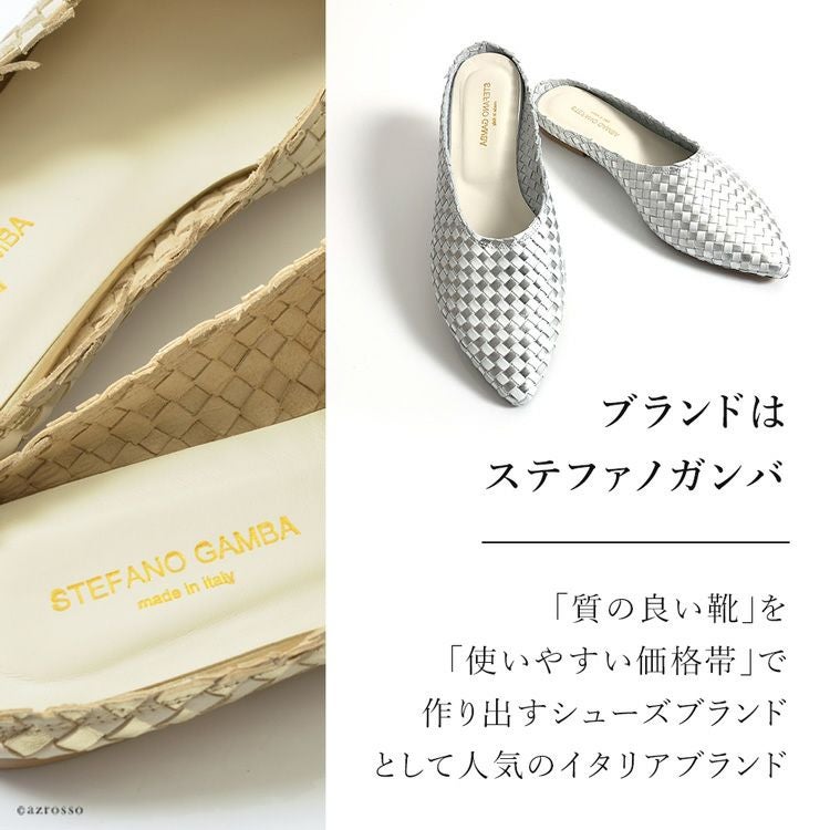 ※特価の為返品・キャンセル・交換無料サービス対応不可。※交換対応は、通常販売時のお買い物通りのご案内です。※サイズ交換希望で、ご交換希望サイズが欠品の場合は返品不可 イントレチャート フラット シューズ レディース ミュール 本革 ぺたんこ 靴 編み込み ゴールド シルバー ステファノガンバ