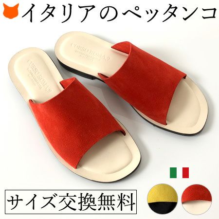 イタリア ブランド CORSO ROMA 9(コルソローマノーヴェ) 夏のスエードレザーのペッタンコ サンダル。クッション入りインソールでフラットヒールでも疲れない、歩きやすい。レッド×ベージュ イエロー×ブラック/ コルソローマ サンダル スエード CORSO ROMA 9 レディース フラットヒール 2cm ペッタンコ レッド 赤 オレンジ ベージュ ホワイト 白 イエロー ブラック 黒 本革 大きい サイズ 25cm 夏