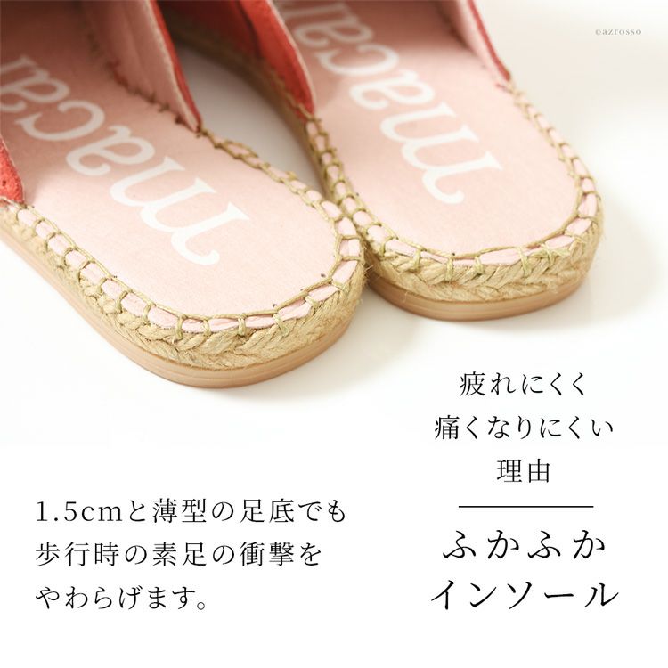 本場スペイン ブランドmacarena(マカレナ) の「きちんと感」のスエード×「リゾート感」エスパドリーユの上品ミュール サンダル 本革 歩きやすい 疲れない 痛くない スリッパ つっかけのように履ける 室内履きにも スエード レザー エスパドリーユ ミュール サンダル フラット ヒール ぺったんこ レディース スペイン ブランド ブラック 黒 レッド 赤 イエロー 黄色 大きいサイズ 25cm