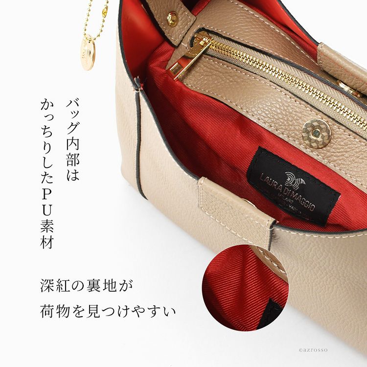 イタリアのバッグブランドLAURA DI MAGGIOのハンドバッグ。カジュアルからキレイめまで、肩掛け、斜めがけもできるショルダーストラップ付き2way。使いやすい黒、茶色、ベージュの3色 イタリア製 ショルダー ハンドバッグ 本革 小さめ ショルダーバッグ 人気 ブランド 通勤 黒 ベージュ ブラウン おしゃれ 肩掛けバッグ 30代 40代 50代