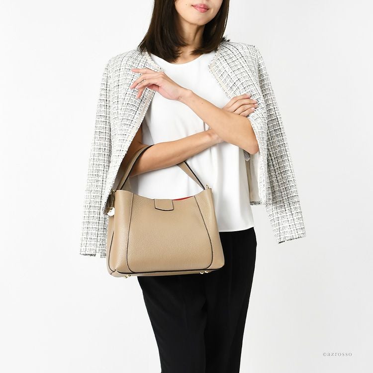 高級感あふれるイタリアブランドの本革ハンドバッグ。ショルダーバッグとして斜めがけもできる2way。きれいめでフォーマルなデザインだから、パーティーバッグや結婚式、入学・卒業式にも活躍する小さめバッグ イタリア製 ショルダー ハンドバッグ レディース ショルダーバッグ 高級 2way 本革 斜め掛け 小さめ 肩掛け きれいめ 大人 上品 フォーマル 自立