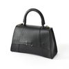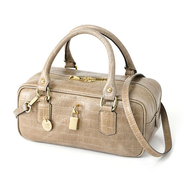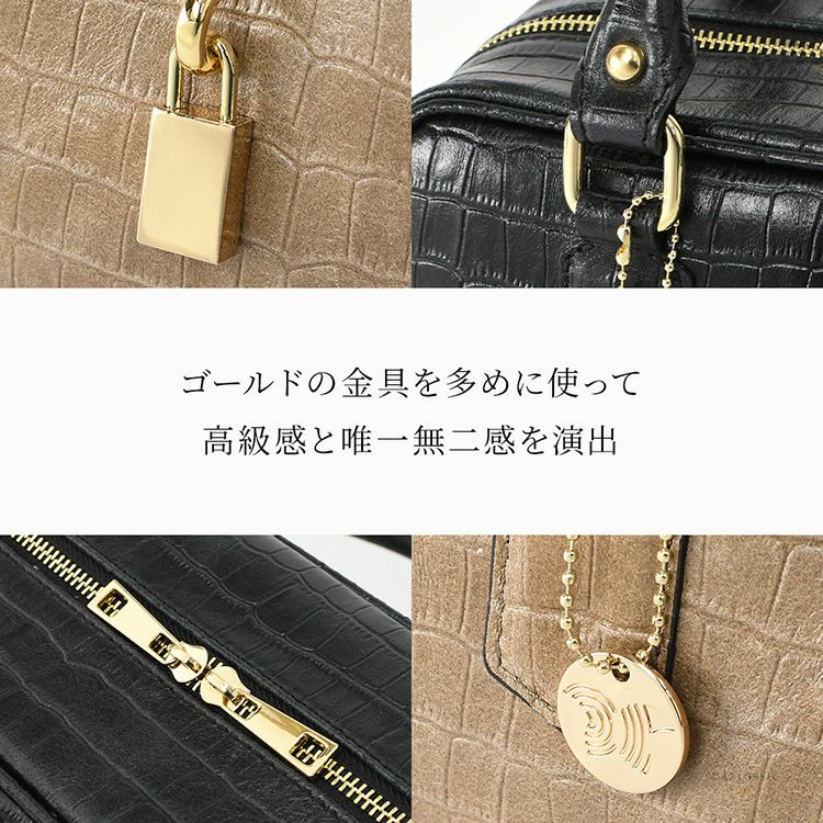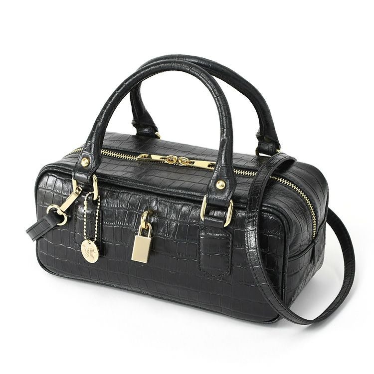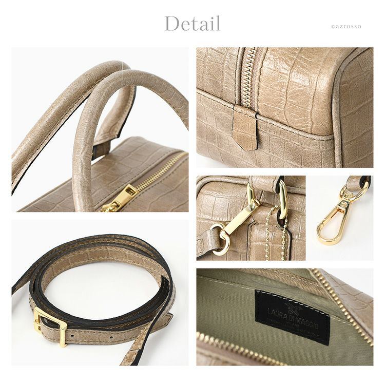 イタリアのバッグブランドLAURA DI MAGGIOのハンドバッグ。横長で小さめでも使いやすい。斜めがけもできるショルダーストラップ付き2way。使いやすい黒、ベージュの型押しクロコダイル柄 イタリア製 ショルダー ハンドバッグ 本革 小さめ 横長 クロコ柄 2way ミニ ショルダーバッグ ブランド 通勤 黒 ベージュ おしゃれ 30代 40代 50代