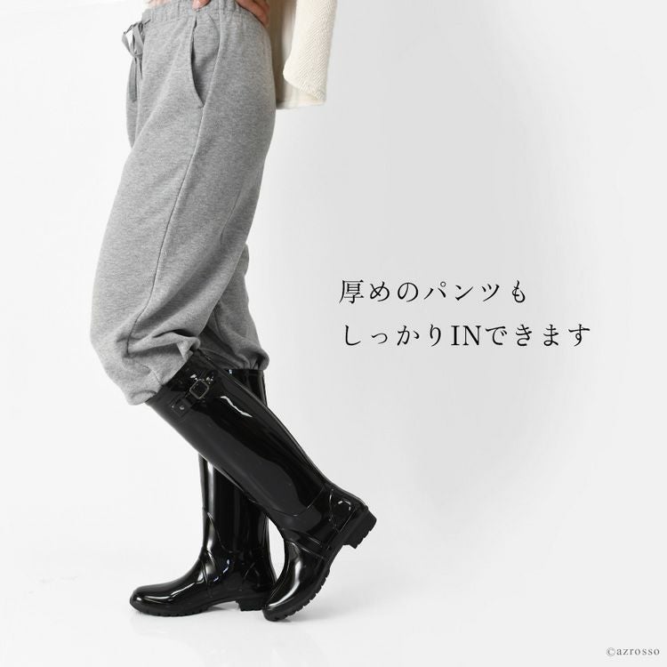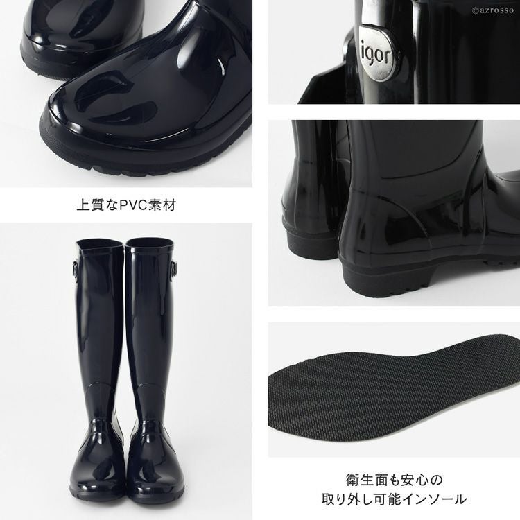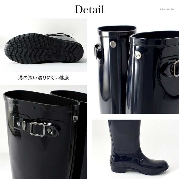 ロングなのに軽いおしゃれなレインブーツがスペインブランドigorから登場。高級感漂うベルトデザインとエナメルのような艶が美しい雨靴。足がキレイに見える細身の長靴は普段履きから通勤まで活躍します。 スペイン製 レインブーツ レディース ロング 細身 軽い 長靴 おしゃれ 滑らない 雨靴 シンプル 履きやすい 歩きやすい ブランド igor