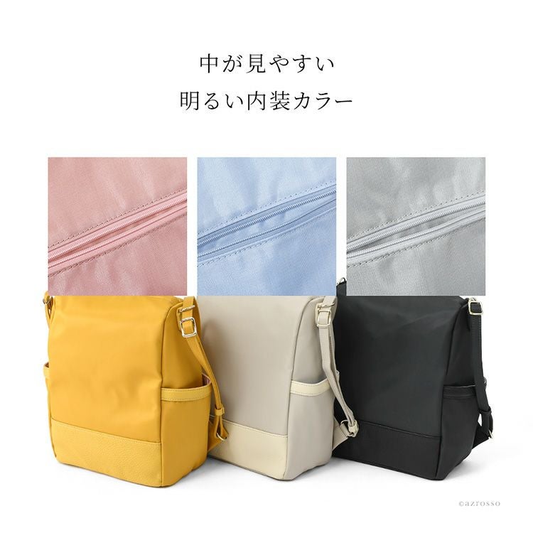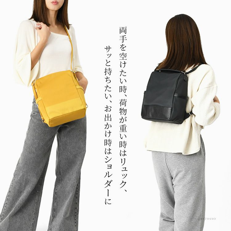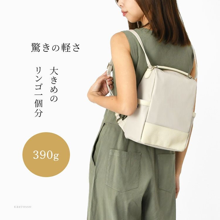 軽量&撥水の日本製ナイロンリュック。2wayでショルダーバッグにもなり、斜めがけ、肩掛けOK。大容量かつ背面開閉で防犯面も安心。シンプルながらレザー使いが上品でおしゃれなスクエア型バックパック 日本製 ナイロン リュック バックパック レディース 軽量 2way ショルダーバッグ 撥水 通勤 シンプル レザー ショルダー リュック 斜めがけ 背面開閉