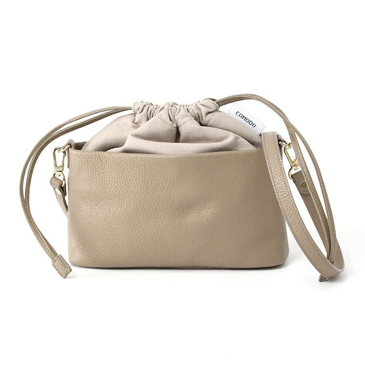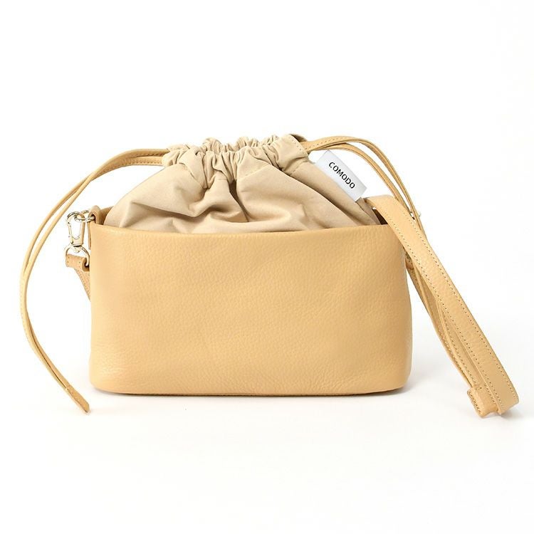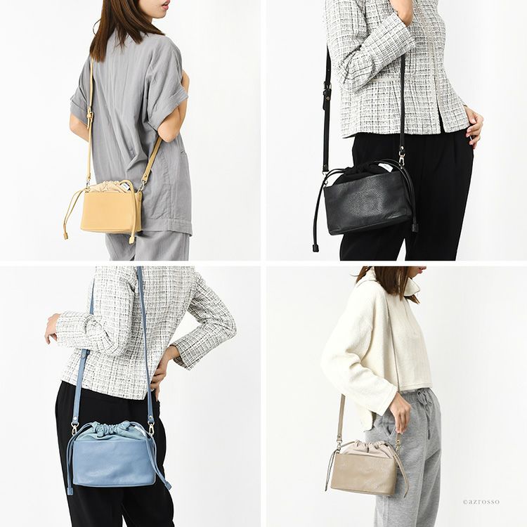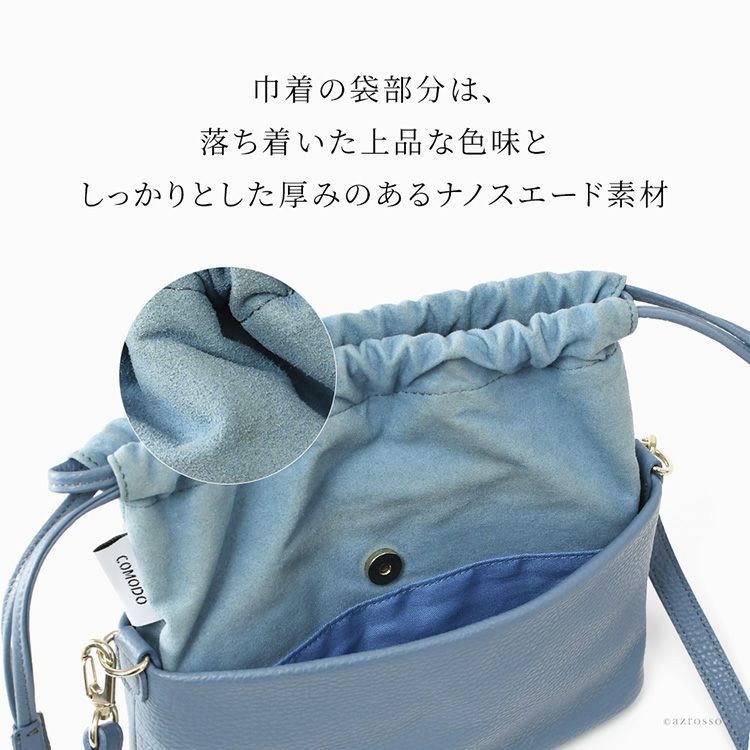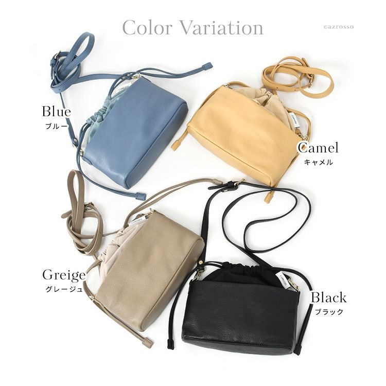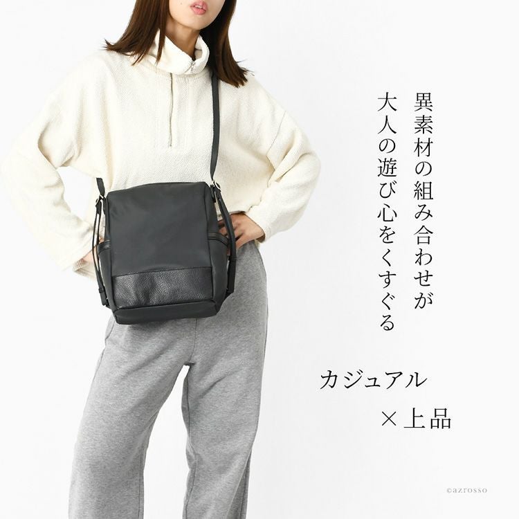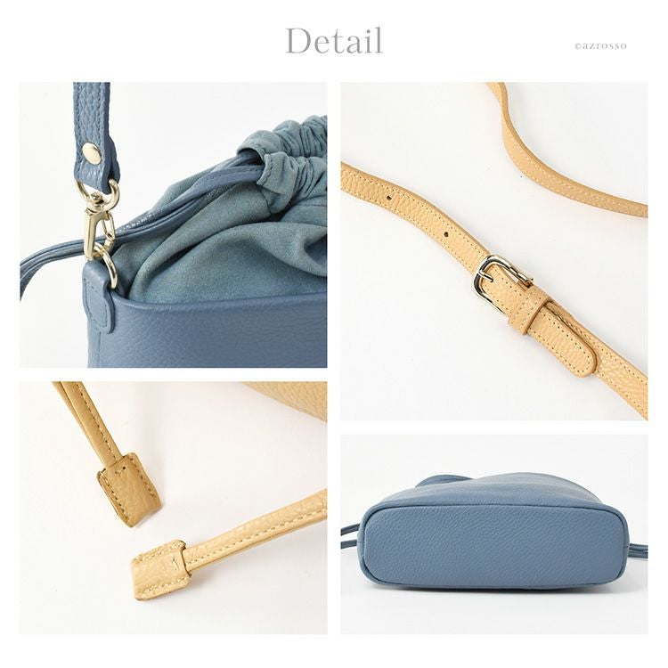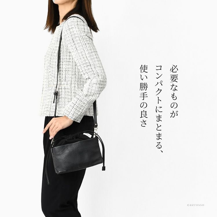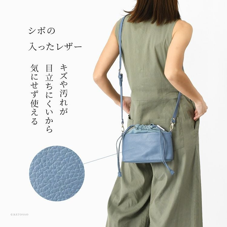 ショルダーと2wayで使える本革使用の巾着バッグ。小さめで軽量ながら、財布やペットボトルも入る斜めがけミニショルダーバッグ。レザーとナイロンの組み合わせがおしゃれなきれいめ巾着ポシェット 日本製 巾着バッグ レディース 2way ミニ ショルダーバッグ おしゃれ レザー 斜めがけ 本革 小さめ 軽量 巾着 ショルダー ポシェット ドロストバッグ