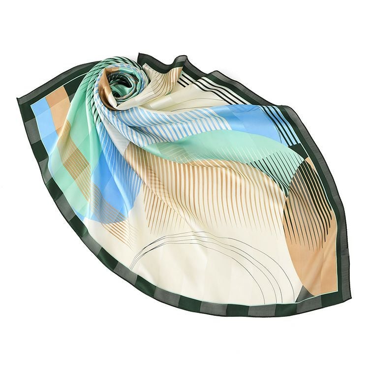 世界に誇る横浜スカーフブランドKINU flawless(キヌ フローレス)の幾何学模様柄シルクスカーフ「リベロ」。誕生日 母の日 敬老の日ギフトにもおすすめの正方形スカーフ リベロ シルク サテン スカーフ 幾何学模様柄 シルク100% 90cm×90cm 正方形 日本製 横浜スカーフ【通常ネコポス配送】