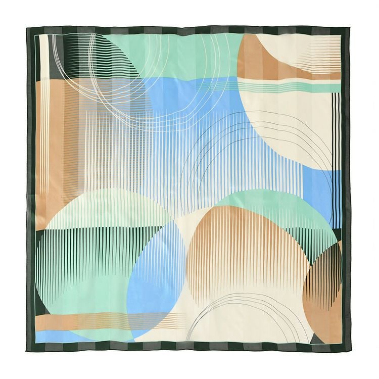 世界に誇る横浜スカーフブランドKINU flawless(キヌ フローレス)の幾何学模様柄シルクスカーフ「レクタングル」。誕生日 敬老の日ギフトにもおすすめの正方形スカーフ レクタングル シルク シフォン 幾何学模様柄 シルク100% 90cm×90cm 正方形 日本製 横浜スカーフ【通常ネコポス配送】