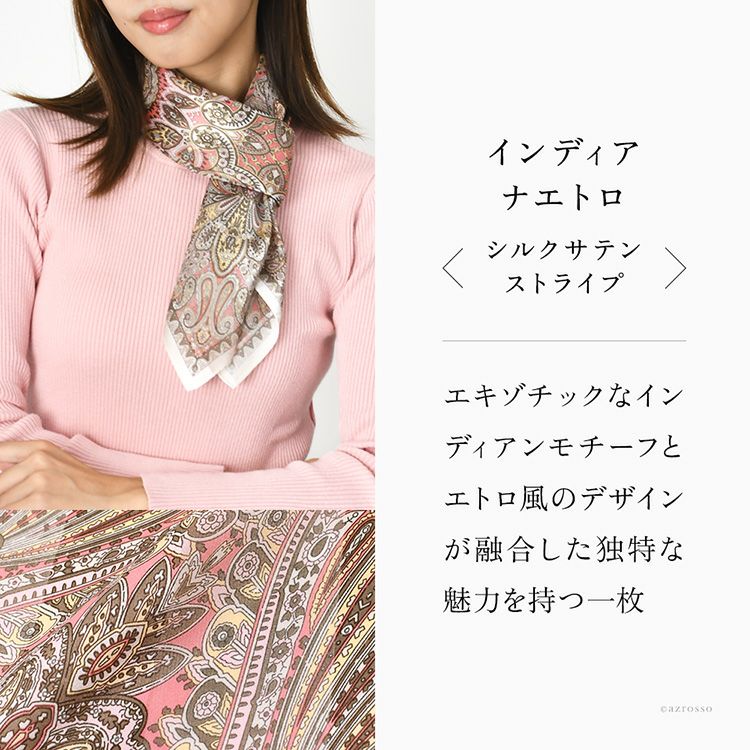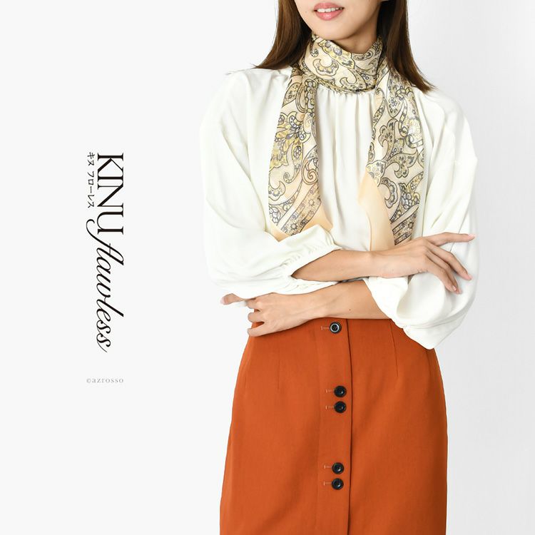 世界に誇る横浜スカーフブランドKINU flawless(キヌ フローレス)のペルシャ柄シルクスカーフ「インディアナエトロ」。誕生日 母の日 敬老の日ギフトにもおすすめの正方形スカーフ インディアナエトロ シルク サテン スカーフ ペルシャ柄シルク100% 90cm×90cm 正方形 日本製 横浜スカーフ【通常ネコポス配送】