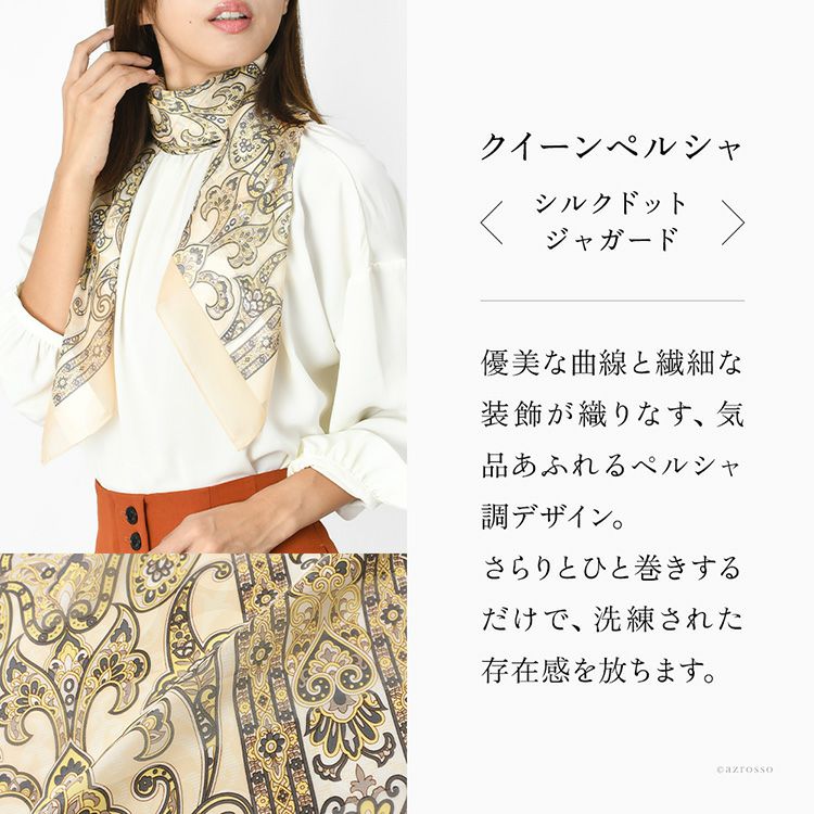 世界に誇る横浜スカーフブランドKINU flawless(キヌ フローレス)のペルシャ柄シルクスカーフ「クイーンペルシャ」。誕生日 母の日 敬老の日ギフトにもおすすめの正方形スカーフ クイーンペルシャ シルク ドット ジャガード スカーフ ペルシャ柄 シルク100% 90cm×90cm 正方形 日本製 横浜スカーフ【通常ネコポス配送】