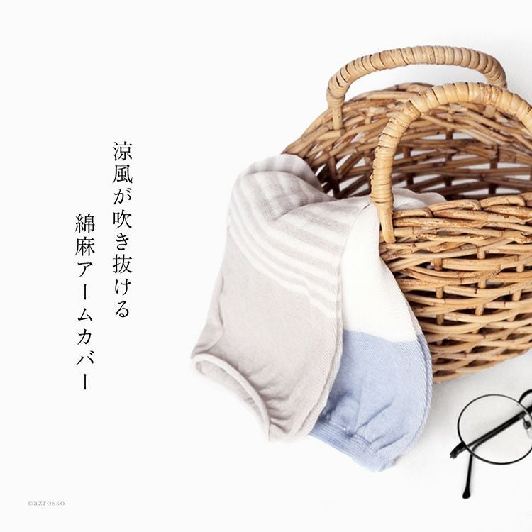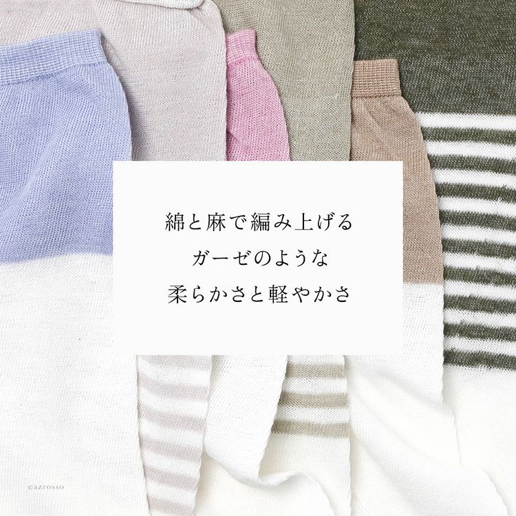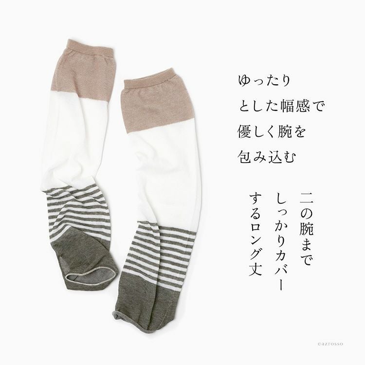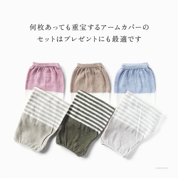 ひんやり心地良いSOUKI(ソウキ)の綿麻アームカバー。2枚選べるお得なセット。プチギフトにもおすすめの限定無料ラッピング付き。超薄手なのにしっかりuvカットしてくれるアームカバー 選べるアームカバー2組セット 綿 麻 ボーダー UVカット 冷感 日本製 ブランド ラッピング付き レディース【通常ネコポス配送】