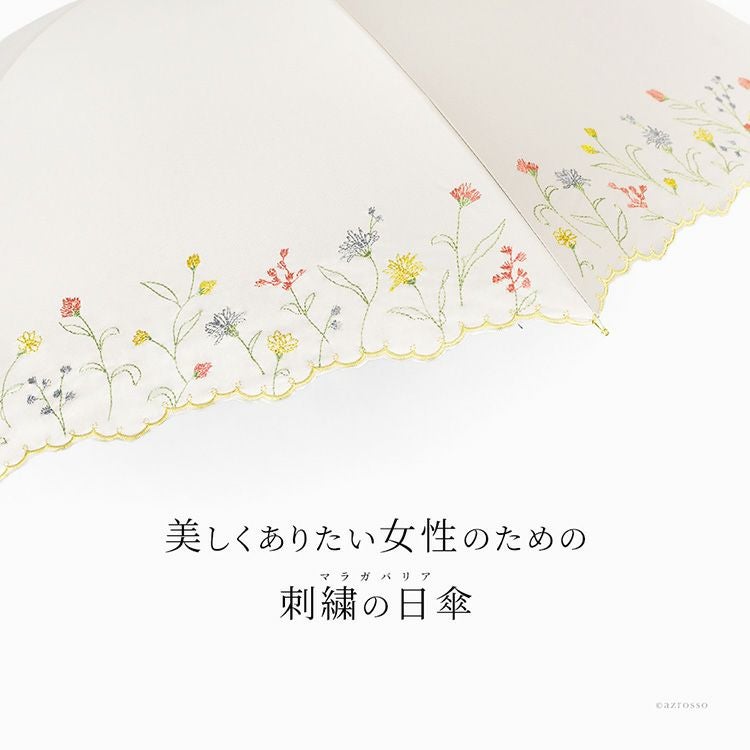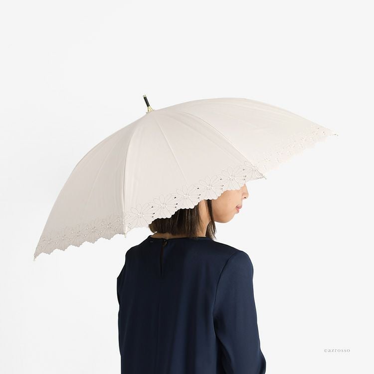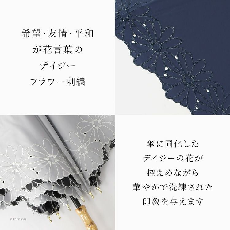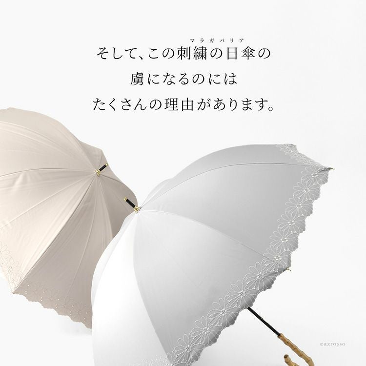 傘に溶け込むデイジーフラワー刺繍が上品な軽量日傘。遮光率99.99%・UVカット率99.9%・遮熱効果あり。突然の雨もしっかり弾く晴雨兼用、和服にもフォーマルにも似合うMalagavaria(マラガバリア)の日傘 刺繍 日傘 長傘 1級遮光 花柄 UVカット99% 遮熱 涼しい 軽量 50cm 晴雨兼用 レディース フラワーボーラー刺繍