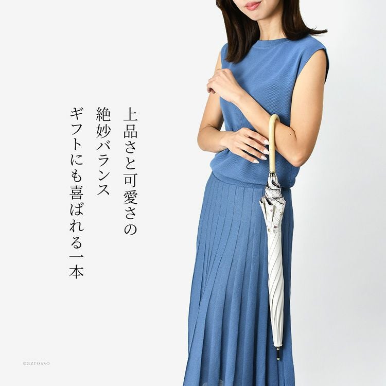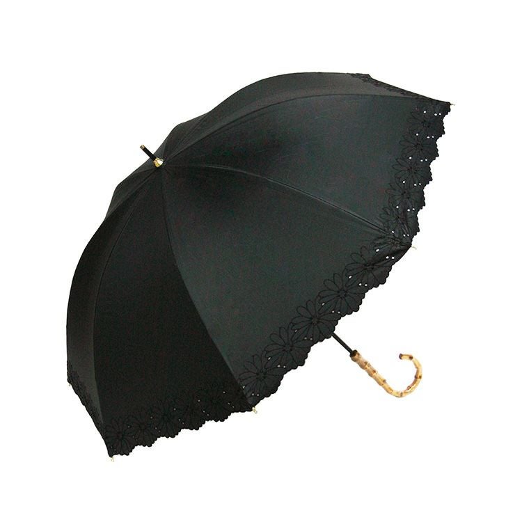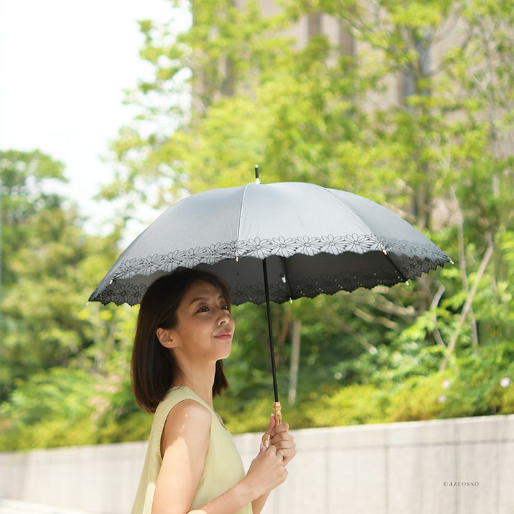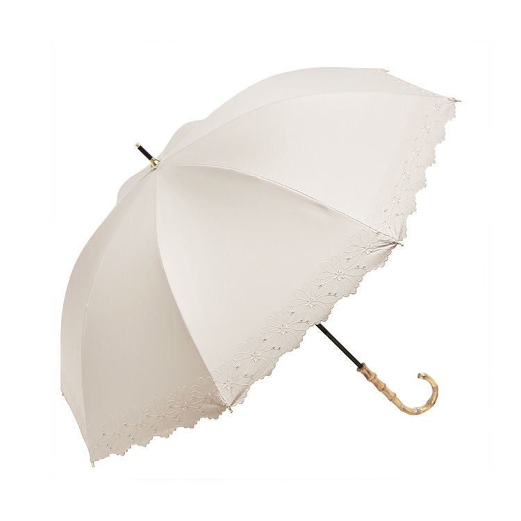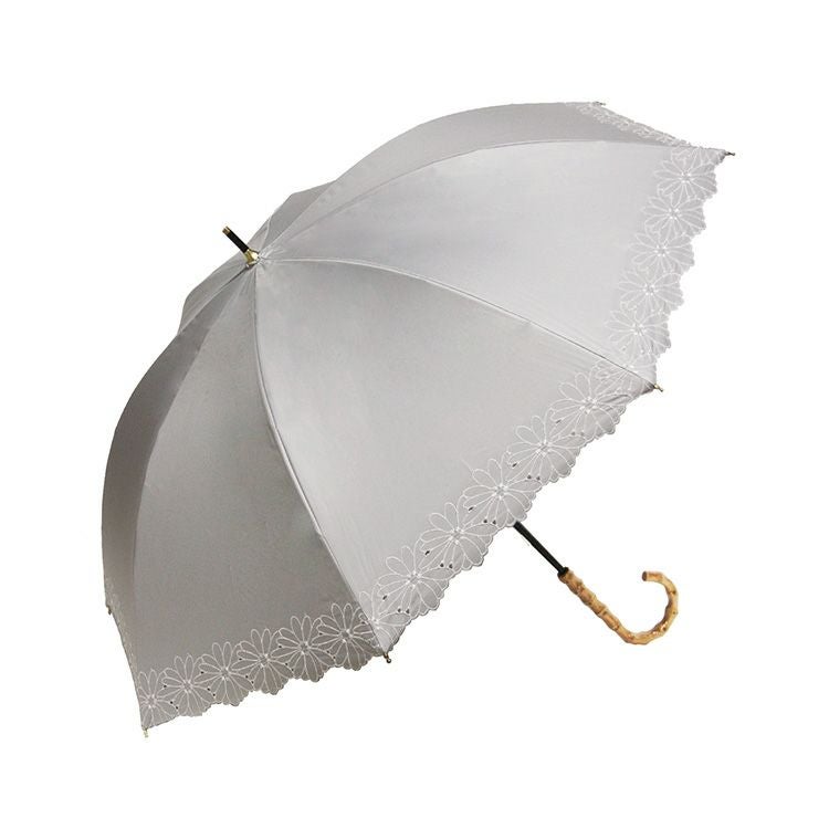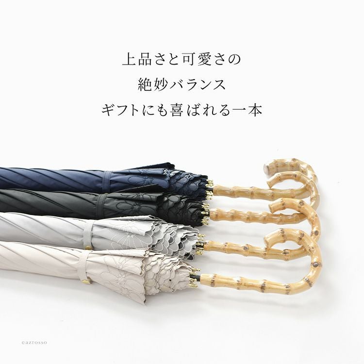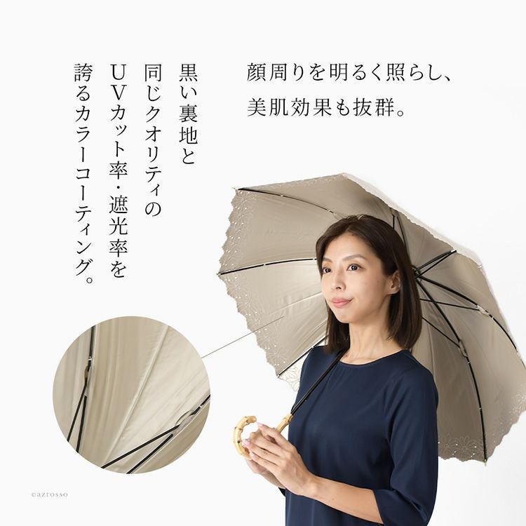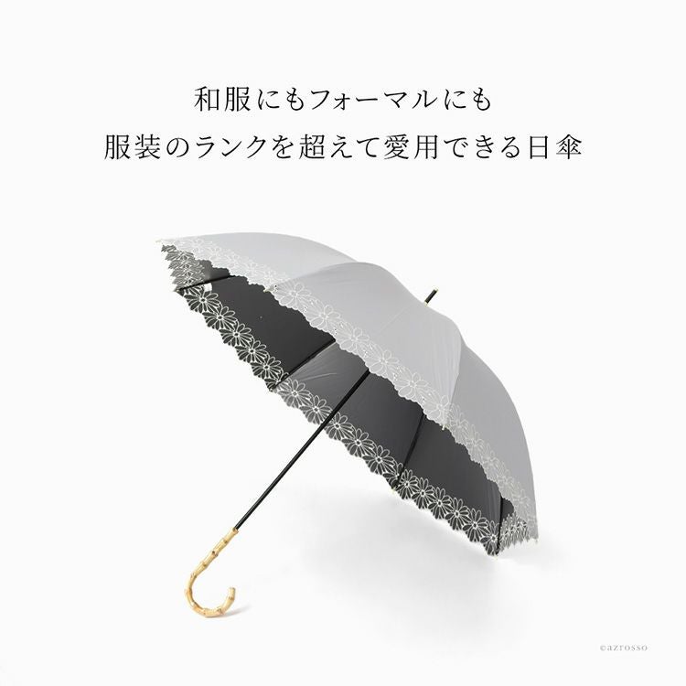 優美な花柄刺繍がエレガントな晴雨兼用日傘「ガーデンフラワー」完全遮光とUVカットで、紫外線カット。UPF50。裏地黒は遮光性を高め、照り返しを防止。上品スタイルが叶う、8本骨で丈夫な長傘タイプ 刺繍日傘 晴雨兼用 長傘 遮光100 完全遮光 レディース UVカット100 裏地黒 遮熱 upf50 花柄 おしゃれ かわいい 母の日 プレゼント ギフト