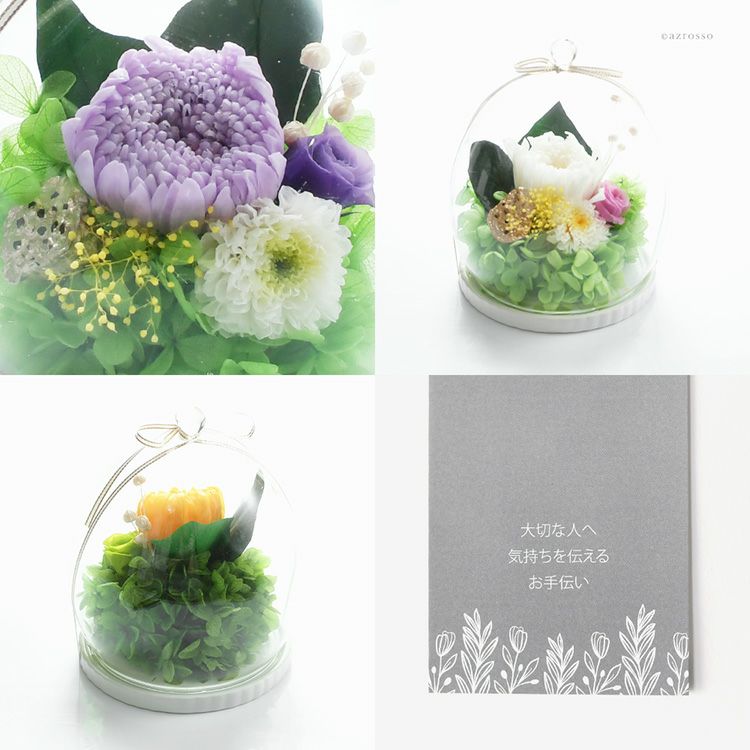 大切な人を偲ぶお花は本物の美にこだわった仏花を選びませんか。自然の華やかさが半永久的に続くプリザーブドフラワーアレンジメント。枯れない・お手入れ不要でお供えやお悔みの献花としても喜ばれるグラスフラワー 仏花 プリザーブドフラワー アレンジメント 仏壇用 グラスフラワー ガラスドーム ボトルフラワー ペット お供え 手元供養 お悔み 花 メモリアル フラワー 枯れない