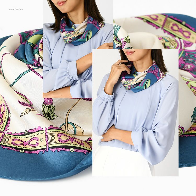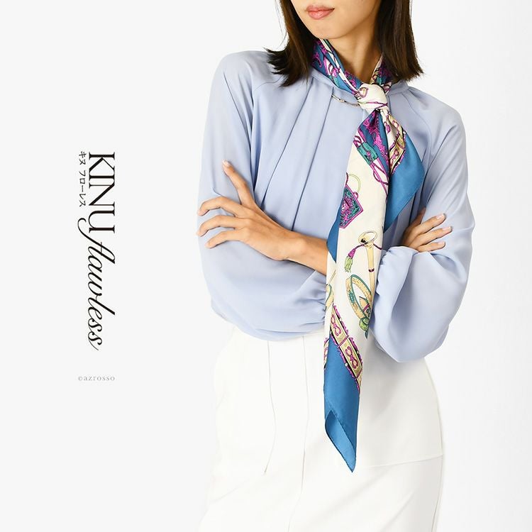世界に誇る横浜スカーフブランドKINU flawless(キヌ フローレス)のエルメス柄(馬具柄)シルクスカーフ「レリーフエルメス」。誕生日 敬老の日ギフトにもおすすめの正方形スカーフ レリーフエルメス シルク ツイル エルメス柄 馬具柄 シルク100% 90cm×90cm 日本製 横浜スカーフ【通常ネコポス配送】