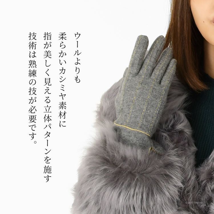 100年続く香川県の老舗手袋ブランド「福田手袋」の職人が丁寧に仕上げたスマホ対応・カシミヤ100%手袋。手指をしなやかに魅せるステッチが美しいレディースグローブ カシミヤ100 日本製 レディース 手袋 スマホ対応 カシミヤグローブ プレゼント ギフト 福田手袋 ブラック グレー ピンク クリスマス