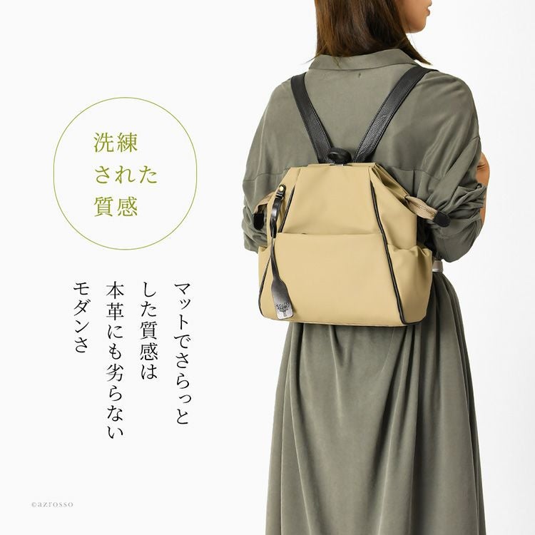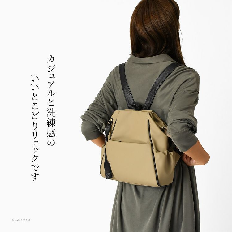 マットでさらっとした質感が特徴のデューロン素材を使用した日本製ミニリュック。傷に強く防水性も高いので大人女性のカジュアルな通勤に活躍する日本の鞄ブランドwithのレディースバッグ。 日本製 リュック レディース 軽量 デューロン 通勤 丈夫 撥水 防水 ブラック ベージュ ミニリュック