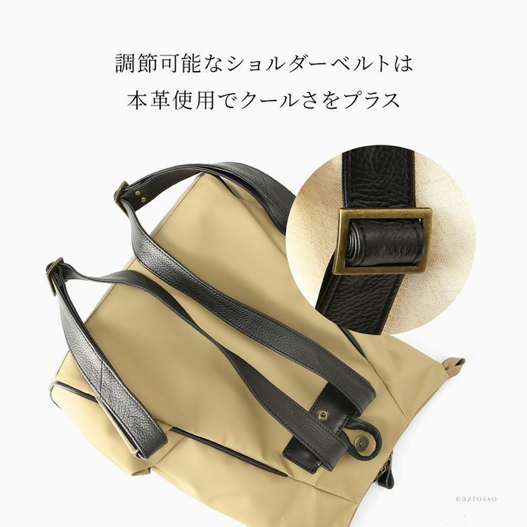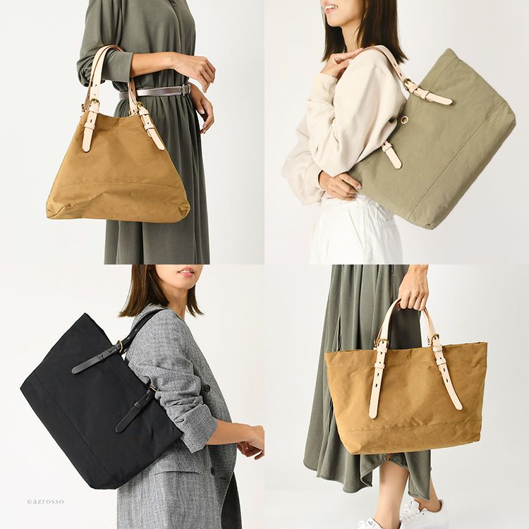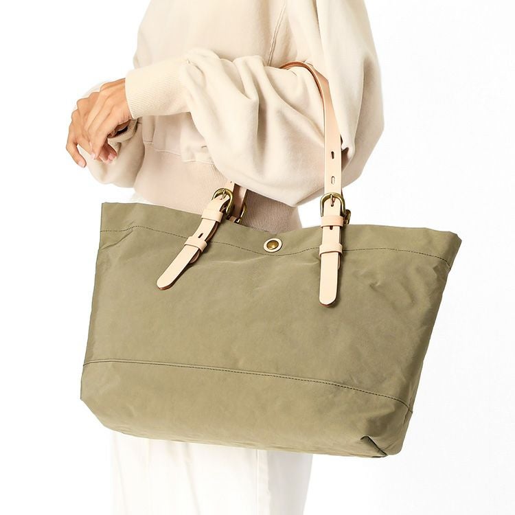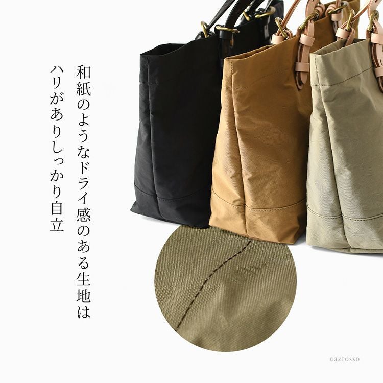 とにかく軽いかつ大容量でストレスフリー。シーンを問わず大活躍する、日本製ナイロントートバッグ。強度のある高密度ナイロン×上質な牛革を使用したレディースバッグ 日本製 ナイロン トートバッグ 軽量 A4 大容量 自立 ブラック カーキ キャメル ジムバッグ サブバッグ マザーズバッグ